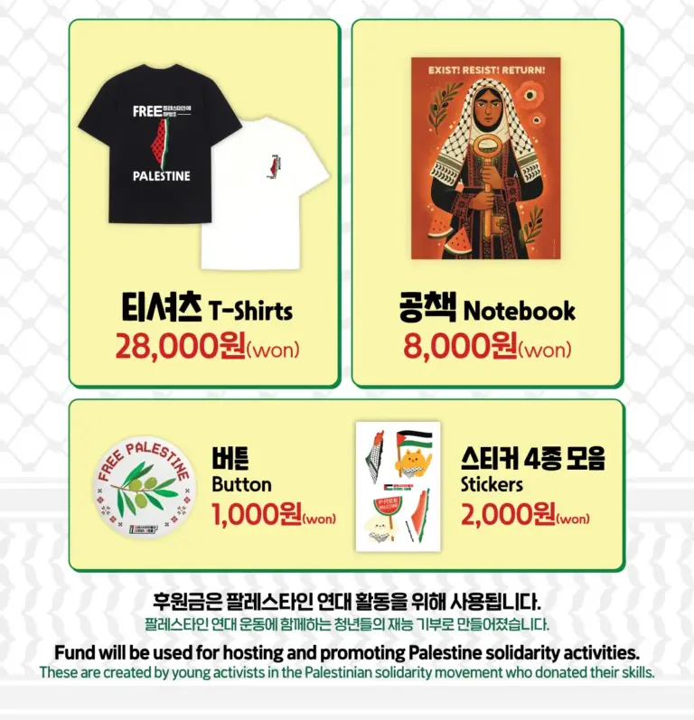 ’People in Solidarity with Palestinians’ is with activists from various migrant backgrounds, including Palestinians, people from the Middle East and North Africa, and 45 Korean civil society organizations. ▶ About | Donation