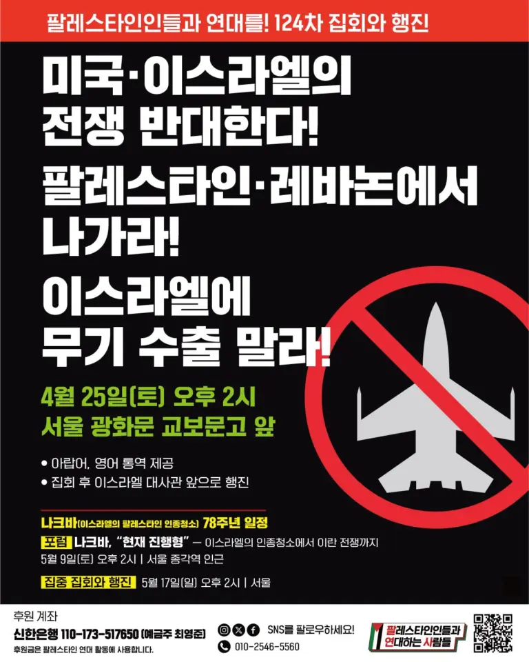 팔레스타인인들과 연대를! 124차 집회와 행진