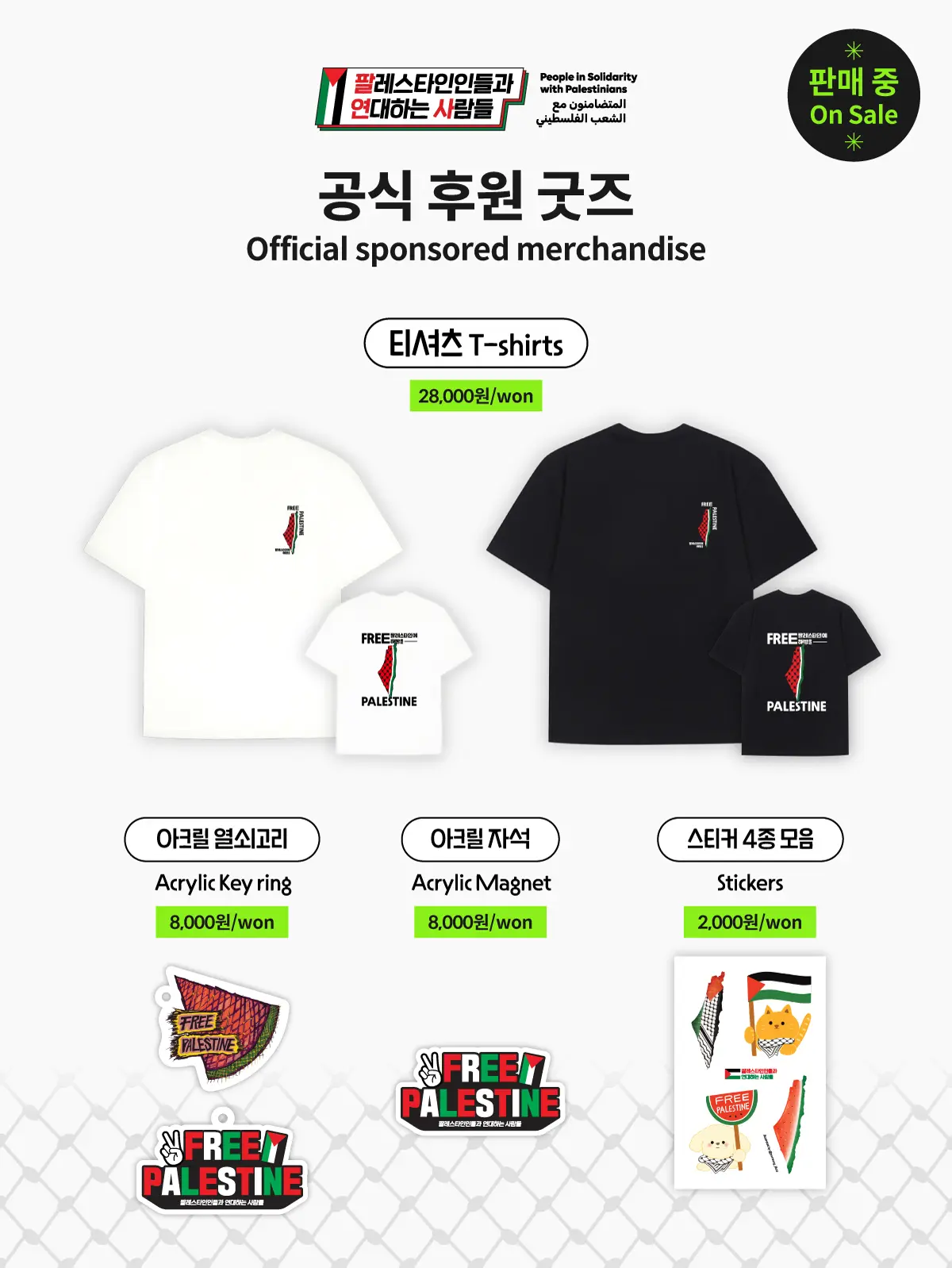 굿즈 판매 수익은 전액 ‘팔레스타인인들과 연대하는 사람들’이 여러 지역에서 개최하는 연대 집회와 포럼, 홍보 등에 사용됩니다!