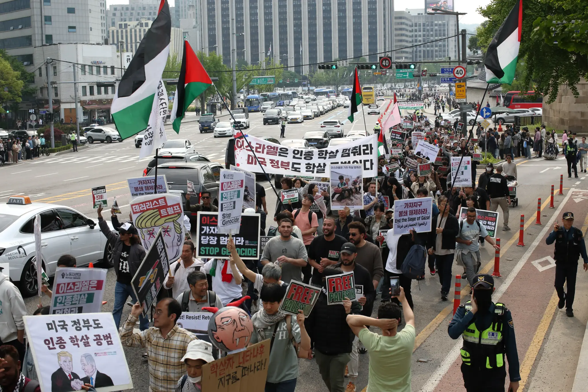 ○ 집회 후 미국 대사관, 이스라엘 대사관 앞 등 도심 행진