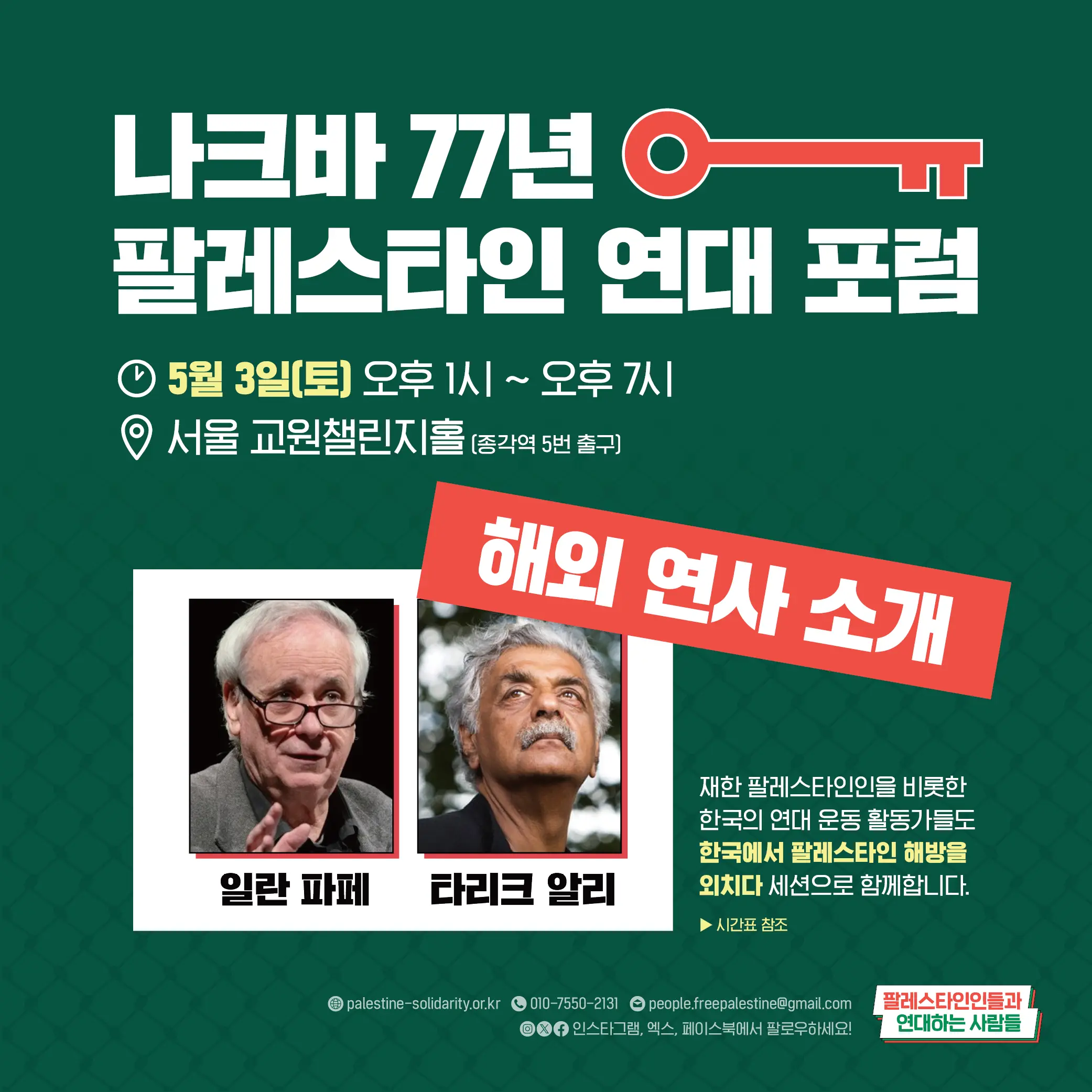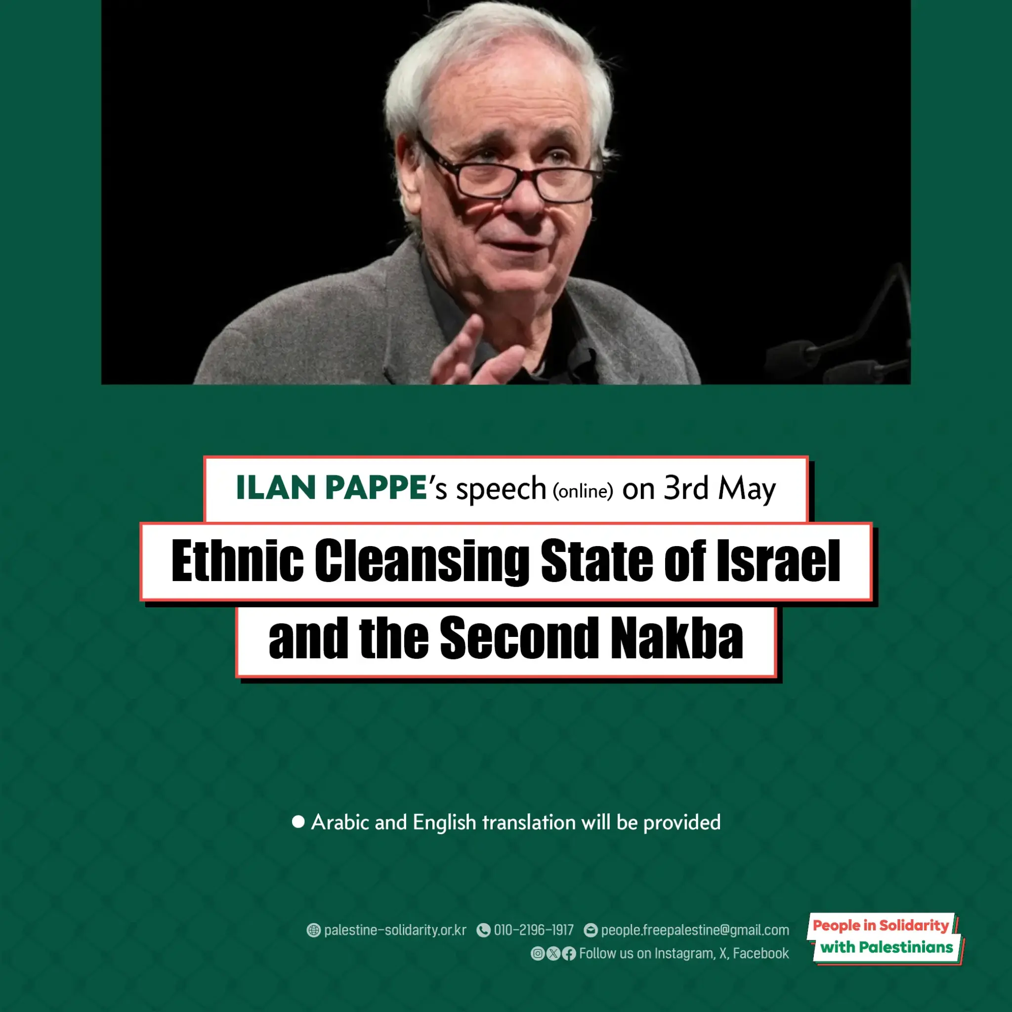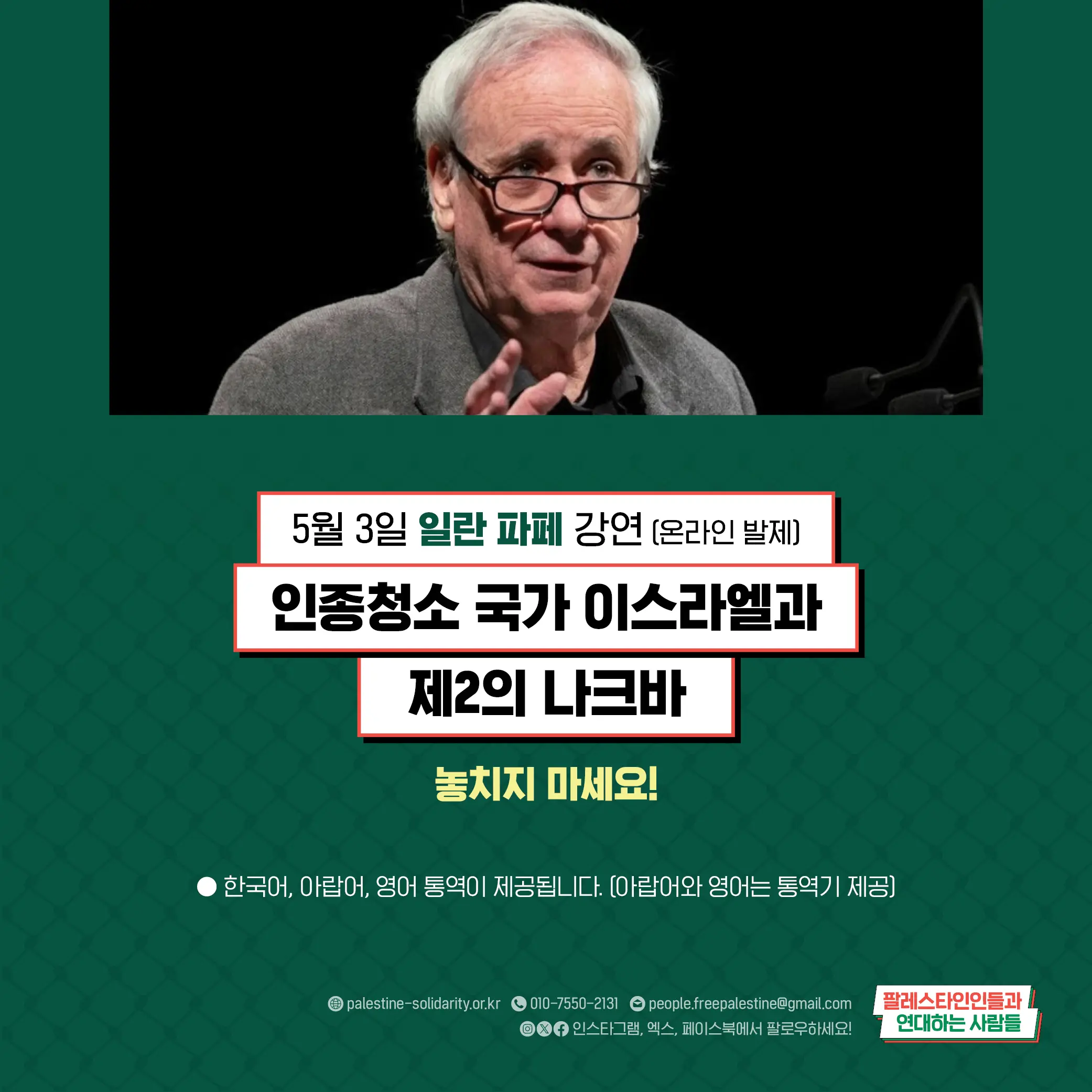 5월 3일, 일란 파페 강연 “인종청소 국가 이스라엘과 제2의 나크바”를 놓치지 마세요!