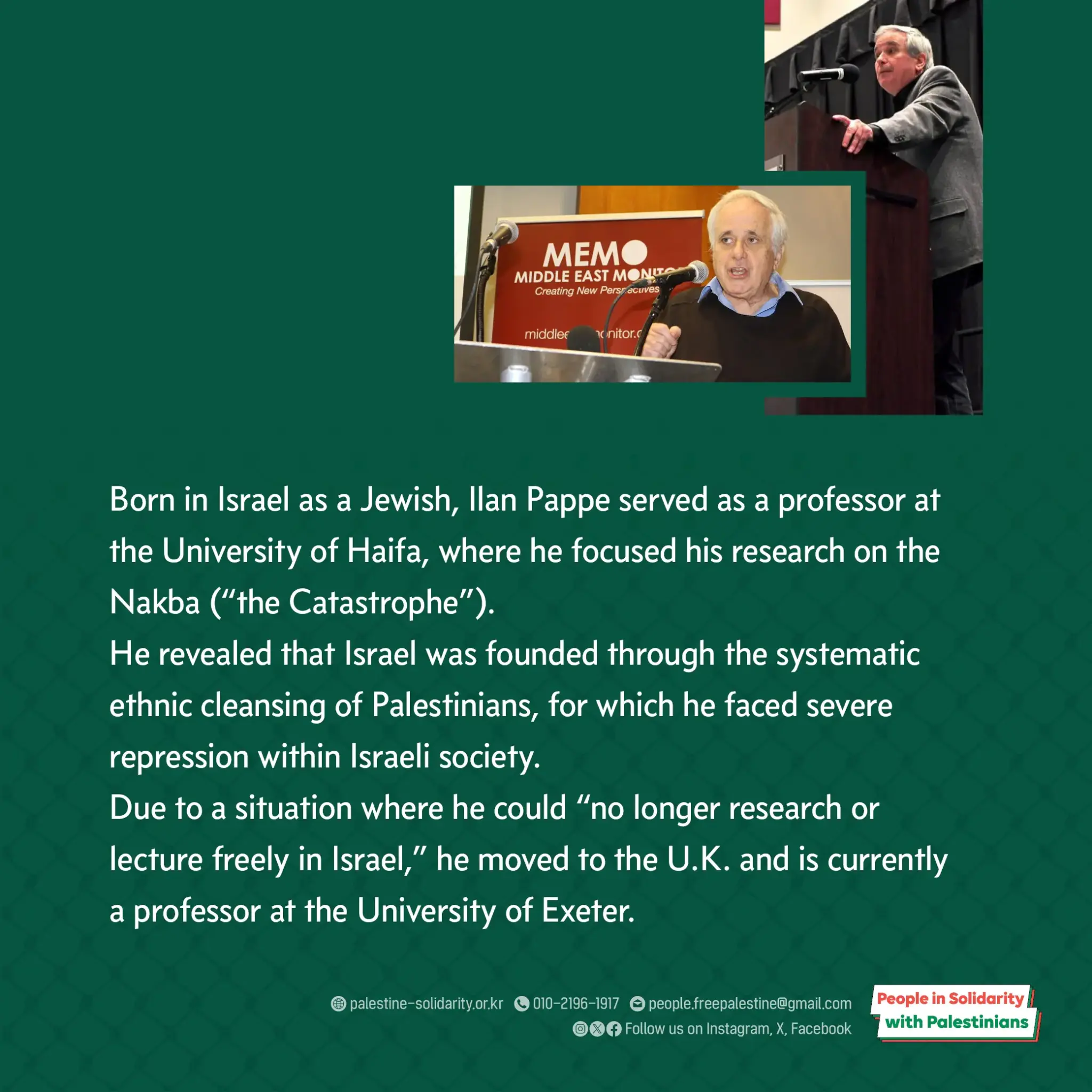 Born in Israel as a Jewish, Ilan Pappe served as a professor at the University of Haifa, where he focused his research on the Nakba (“the Catastrophe”).