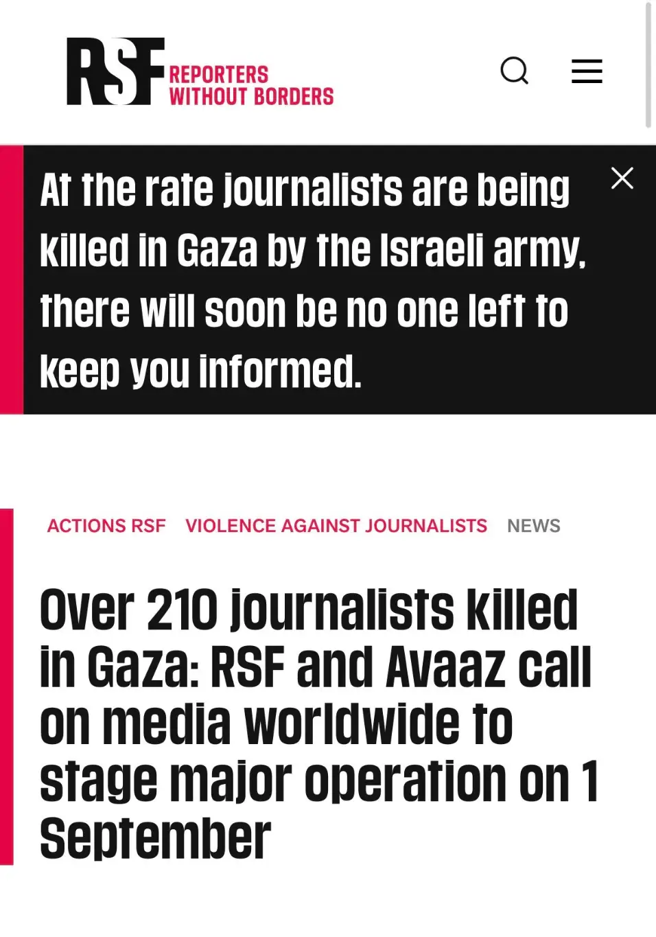 At this very moment, journalists in Gaza risk their lives under bullets and bombs to tell the truth, and we pledge never to cease our solidarity with them and with their colleagues who have already been murdered.