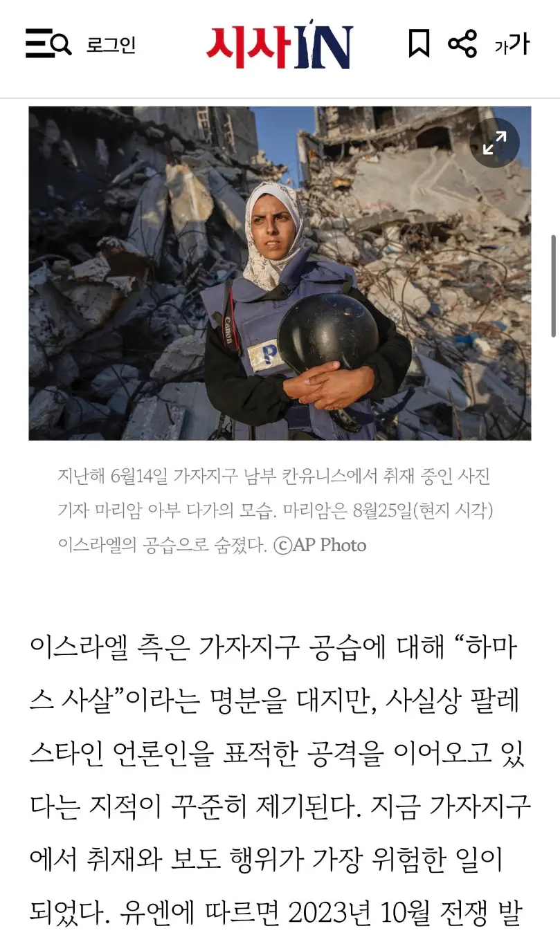 📸 “이스라엘군이 가자지구에서 계속 기자를 살해한다면, 당신에게 뉴스를 전할 사람이 아무도 남지 않을 것입니다.”