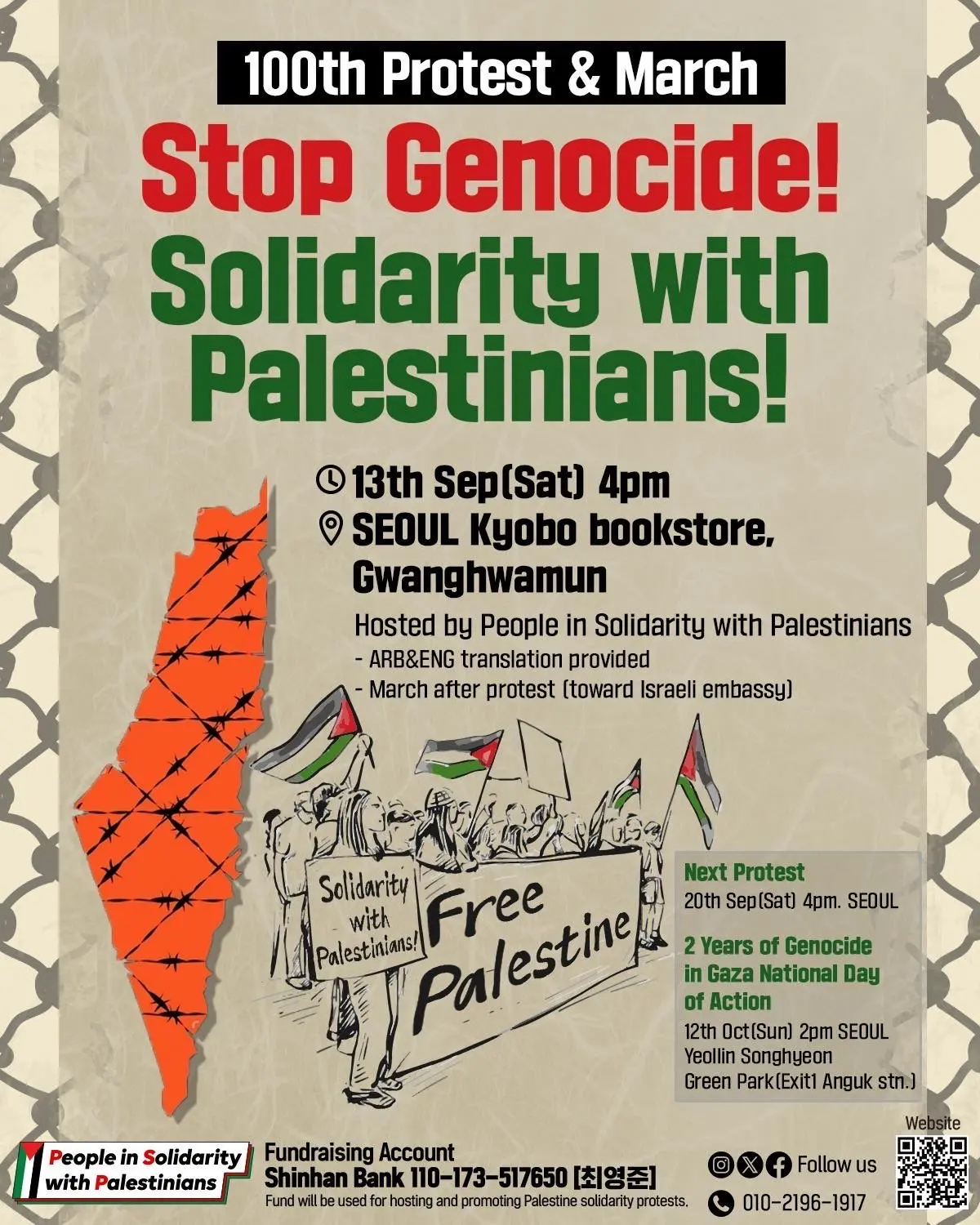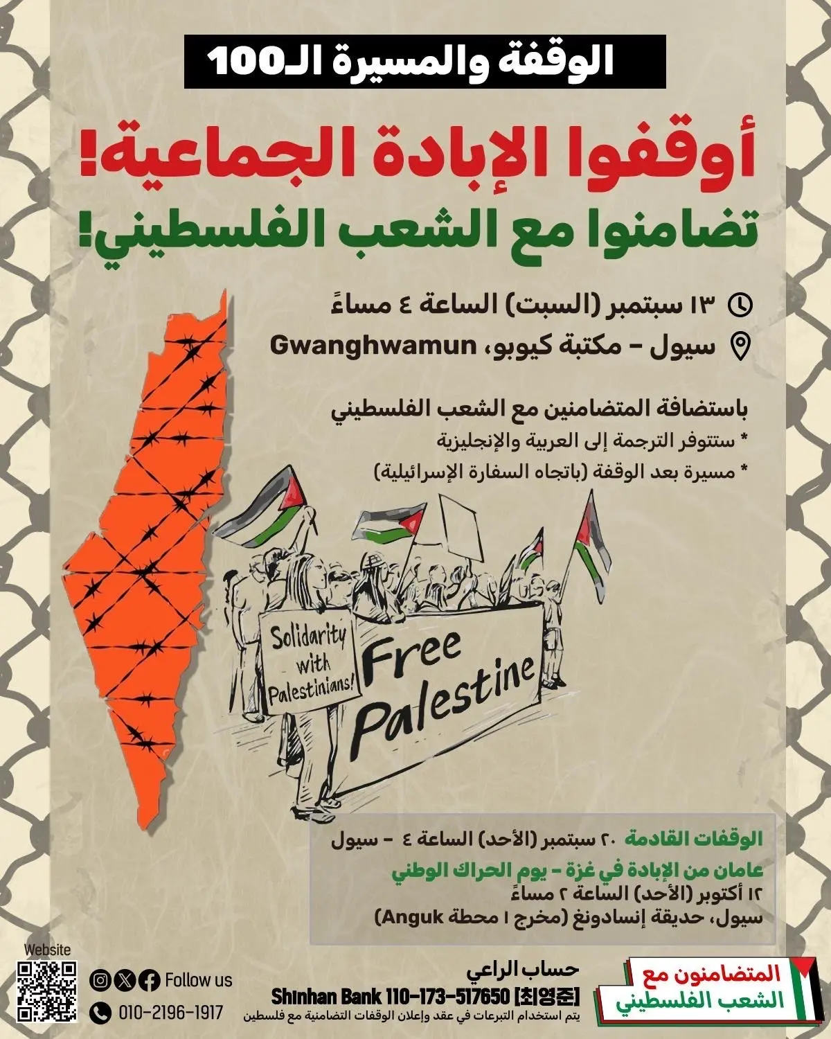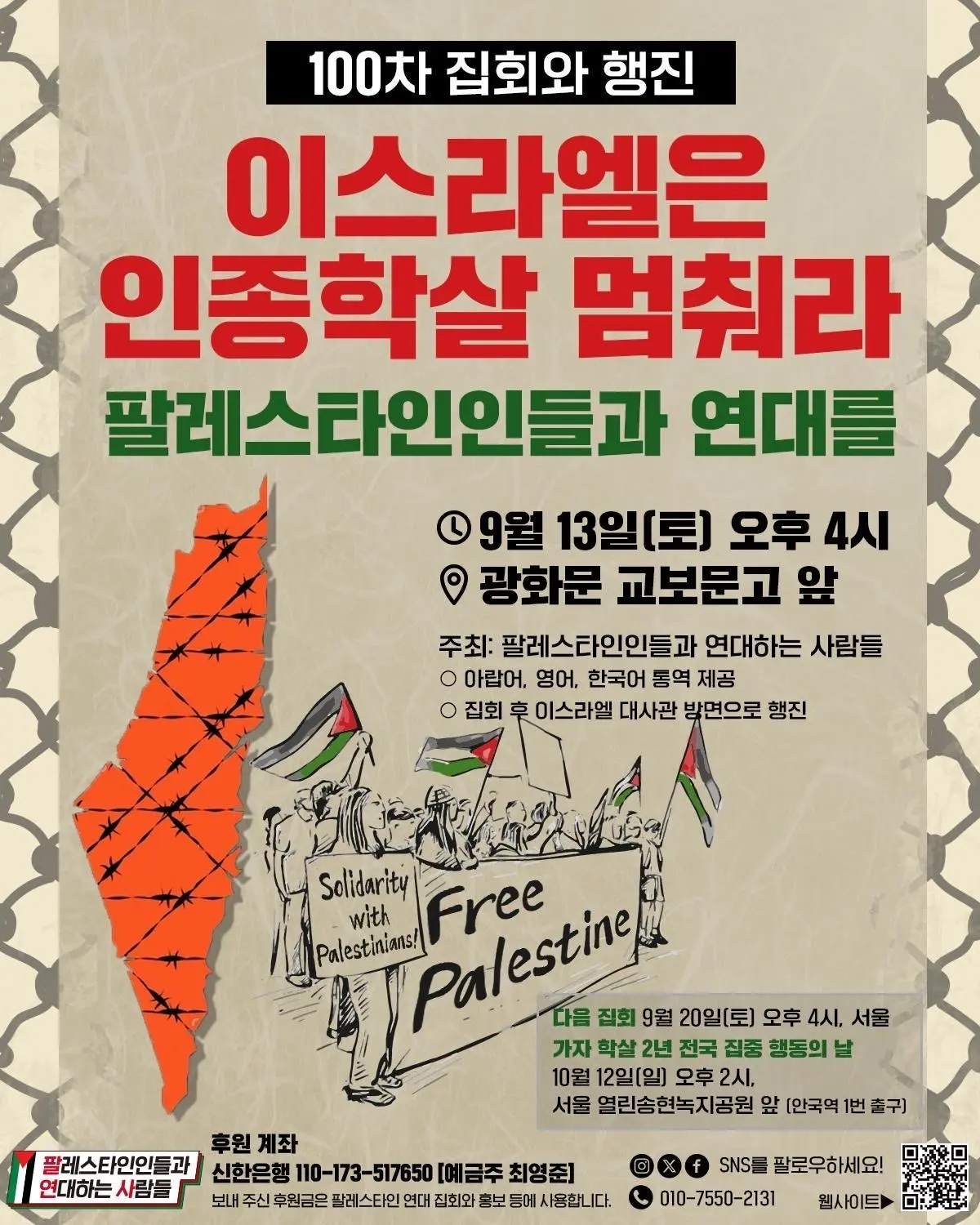 🇵🇸 ‘팔레스타인인들과 연대하는 사람들’이 100번째 해방을 향한 걸음에 나섰습니다.