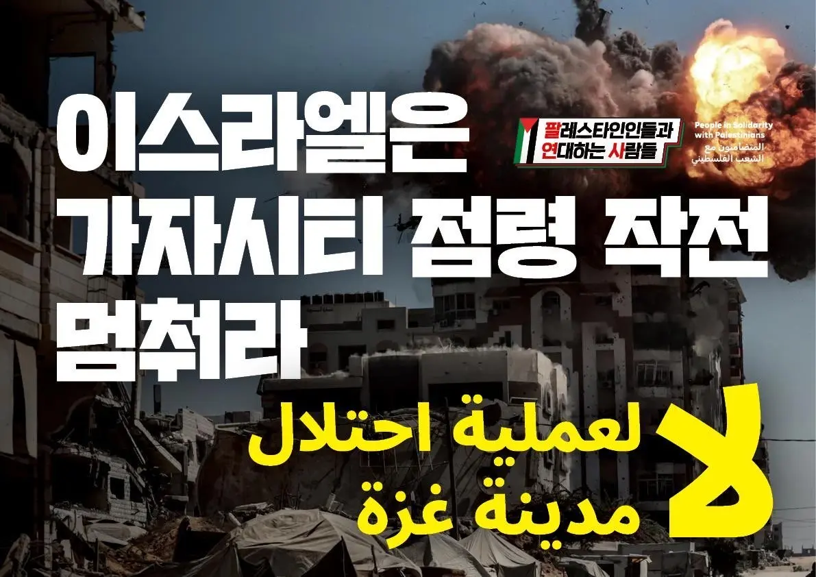 [대형팻말] 이스라엘은 가자시티 점령 작전 멈춰라