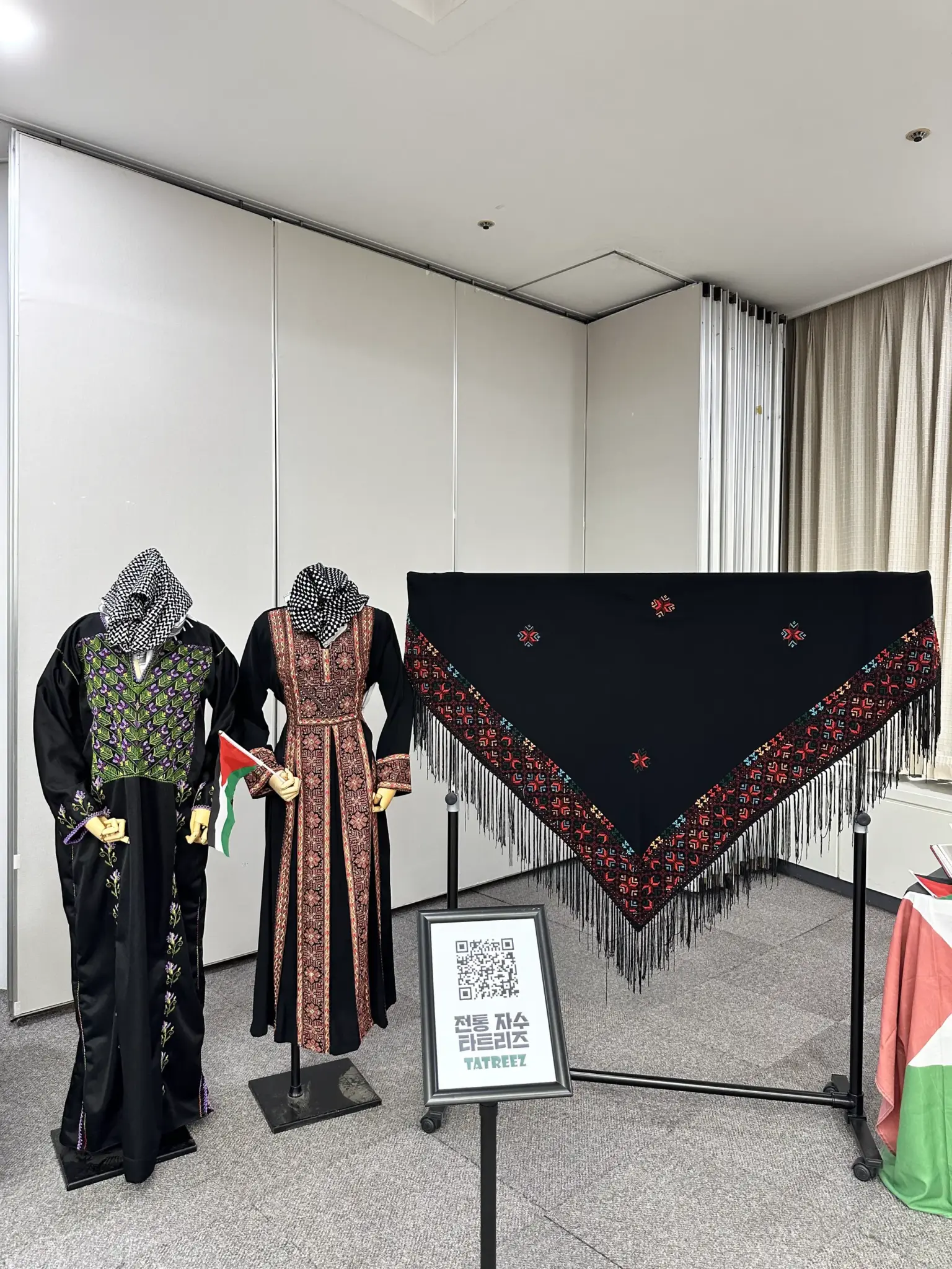 전통 자수 타트리즈, 전통 춤 답케, 팔레스타인 케피예, 지도를 통해 본 팔레스타인의 역사 그리고 팔레스타인 청년 예술가의 예술 작품까지.