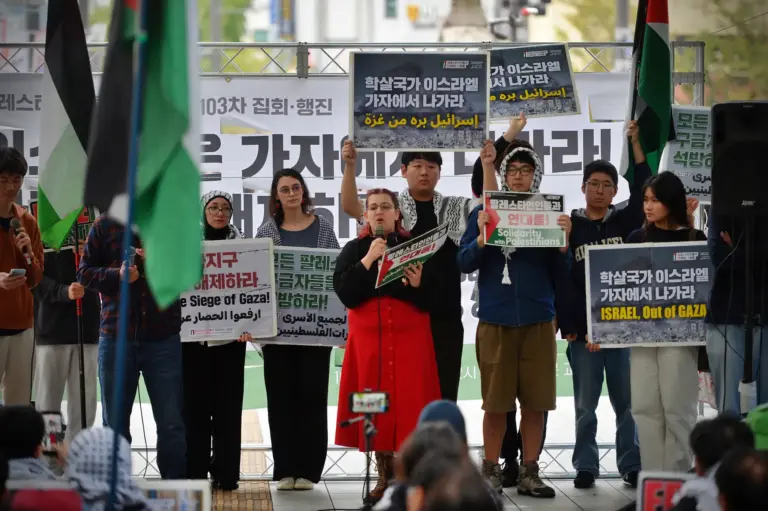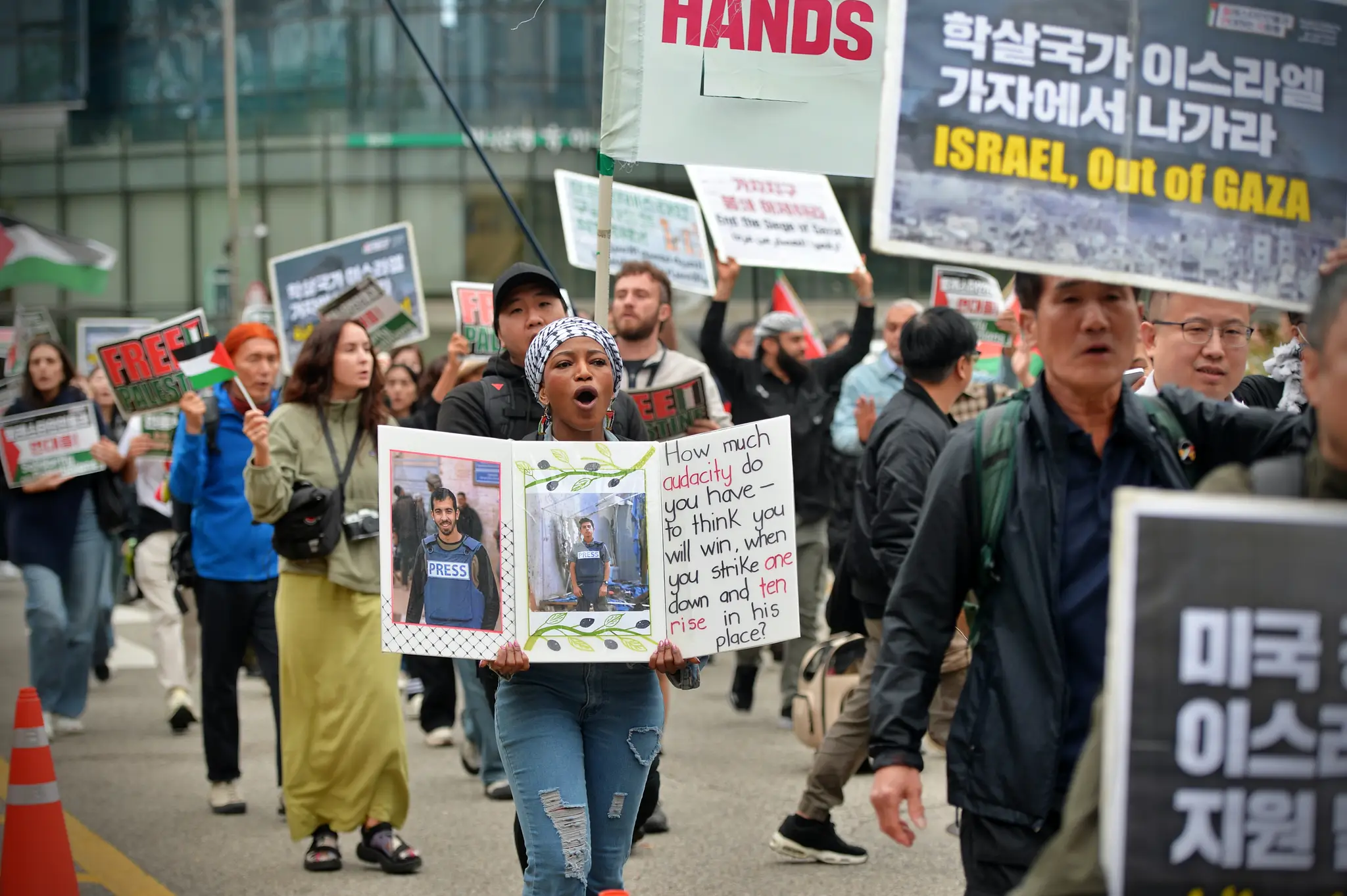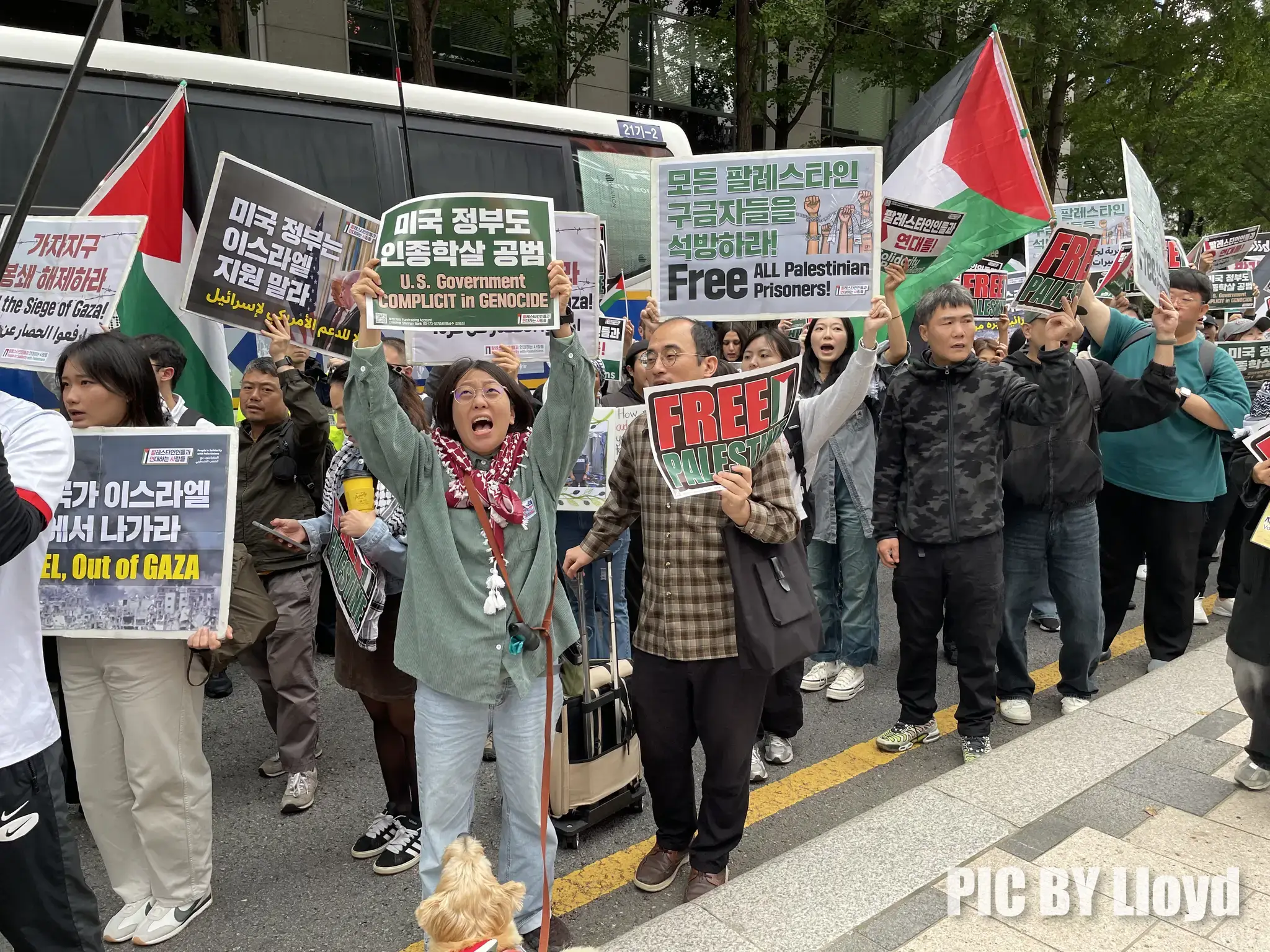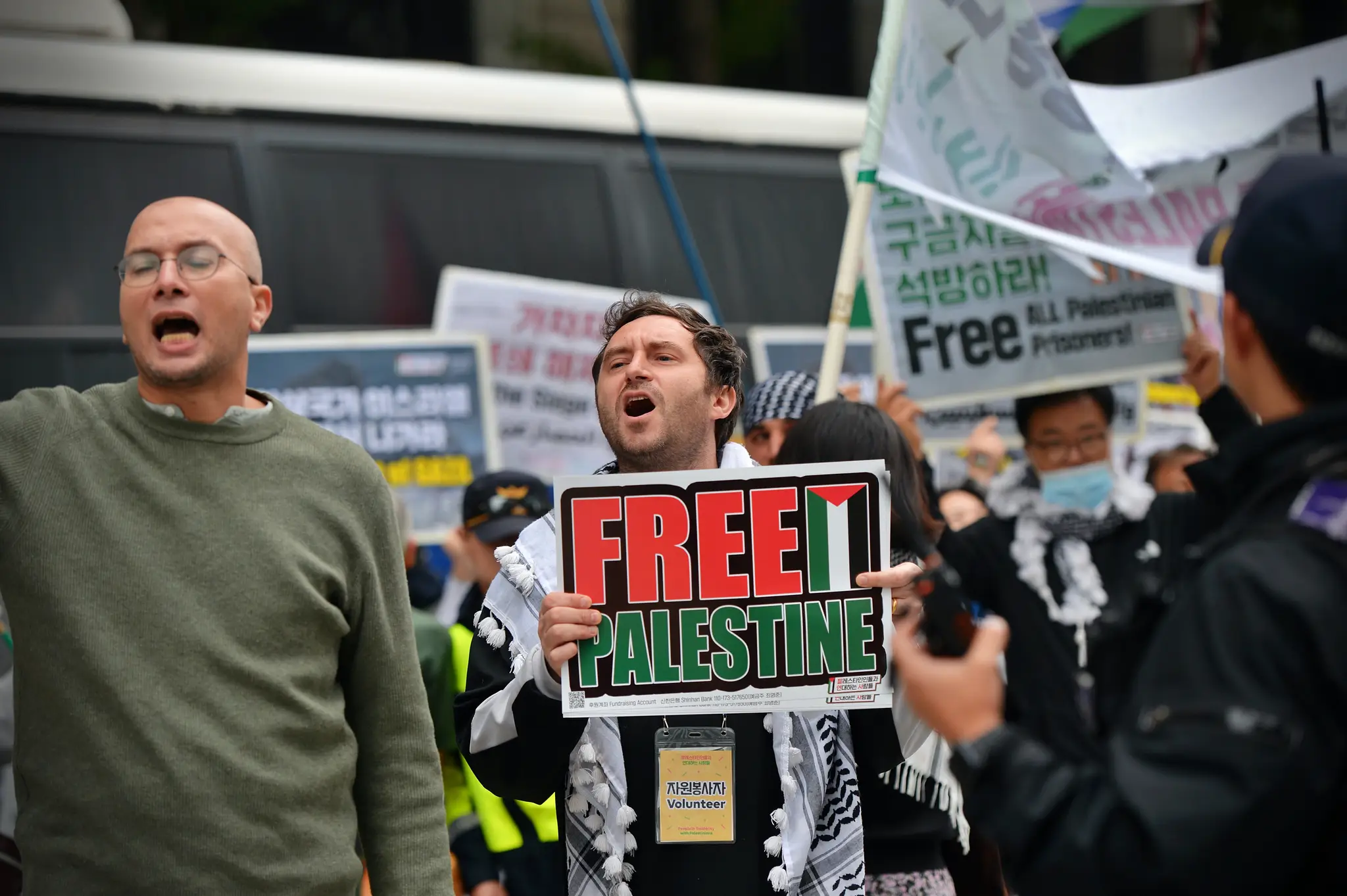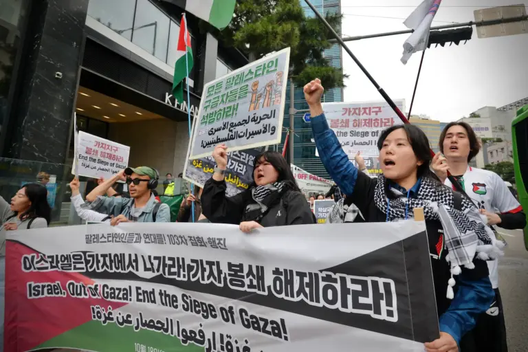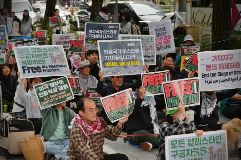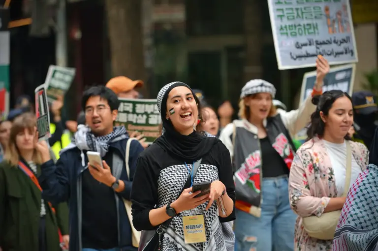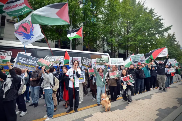 ✌️ Participants raised their voices in front of the Israeli Embassy in Seoul, chanting “Down Down Israel” and “Free All Palestinian Prisoners!”