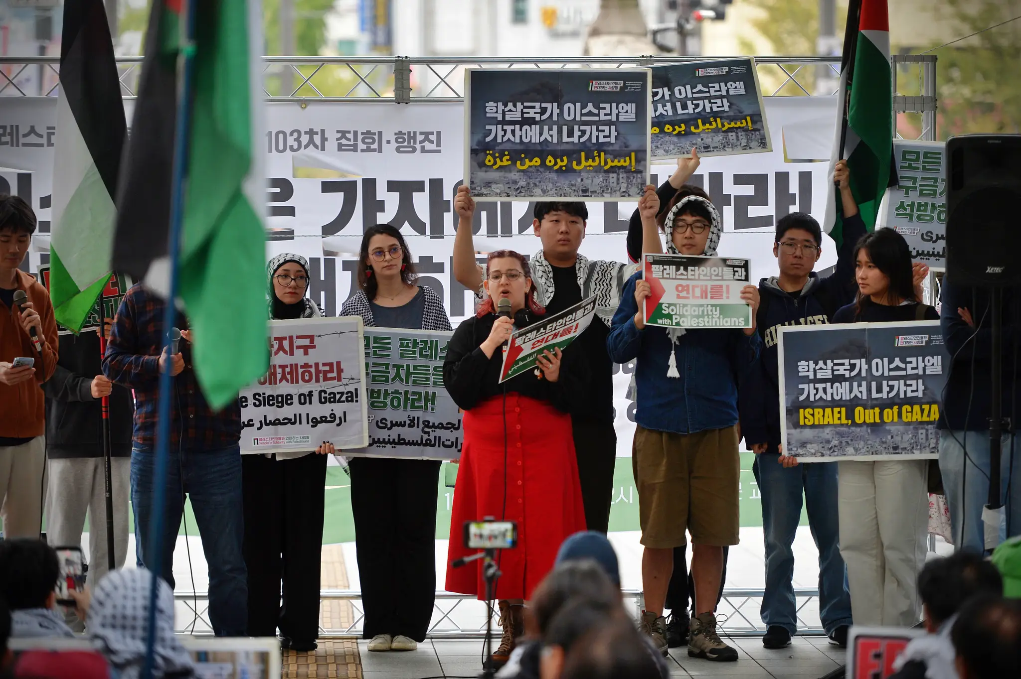 📢 103번째 집회에선 “트럼프는 가자지구에서 손 떼라”는 규탄 발언이 이어졌습니다. 재한 팔레스타인인, 한국인 활동가, 이집트 정치 난민, 그리고 이탈리아 대학생 발언까지. 발언자들과 참가자들은 학살국가 이스라엘을 규탄했습니다.