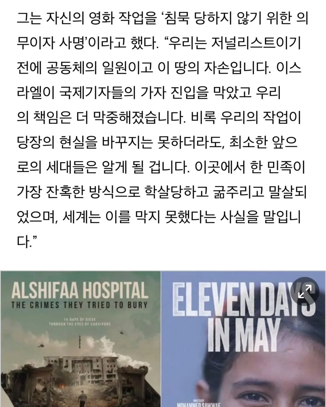 가자 지구 현지 기자이자 영화감독인 무함마드 사와프 님 인터뷰
