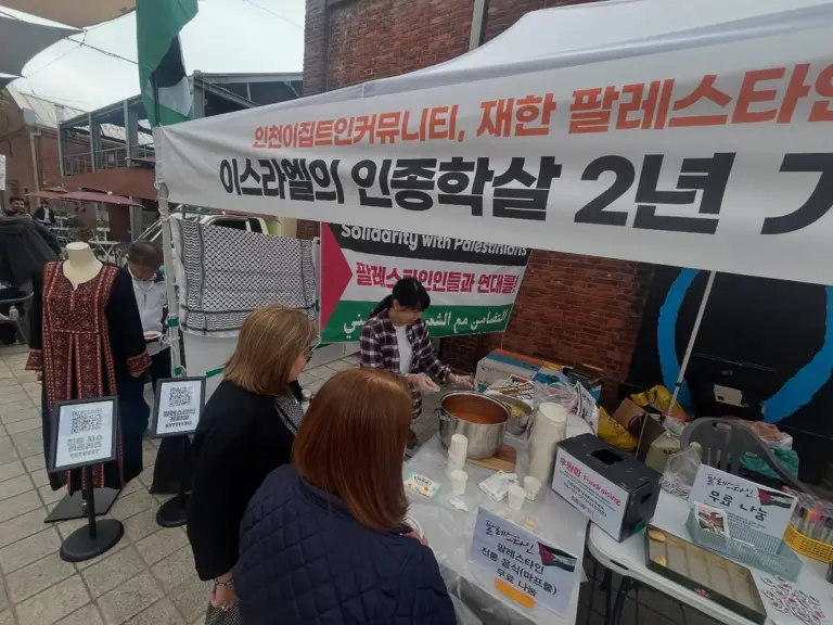 📣 전교조인천지부, 재한 팔레스타인인, 인천이집트인커뮤니티, 팔레스타인인들과 연대하는 사람들(인천)은 지난 해에 이어 올해 2년째 인천평화축제에서 팔레스타인 연대 나눔 부스를 운영했습니다.