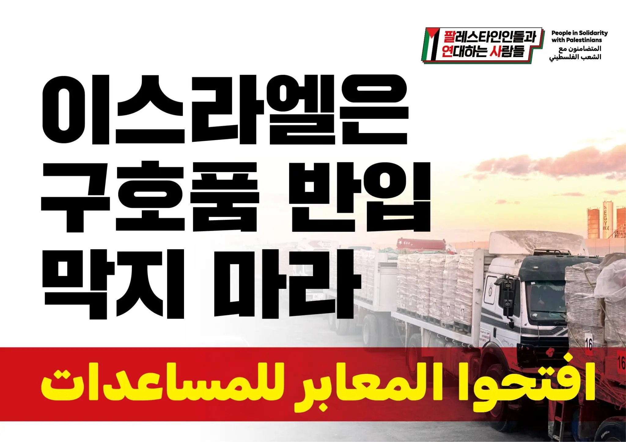 [대형팻말] 이스라엘은 구호품 반입 막지 마라