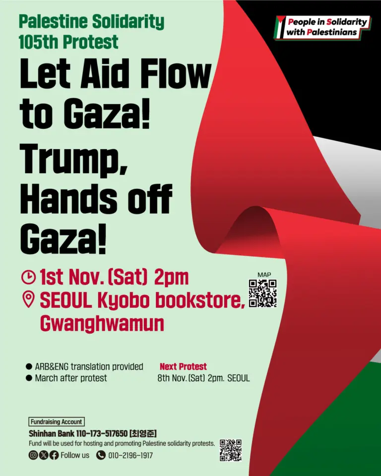 🇵🇸 we condemned Israel for breaking the ceasefire and bombing Gaza, and called on South Korea to end all ties with Israel.