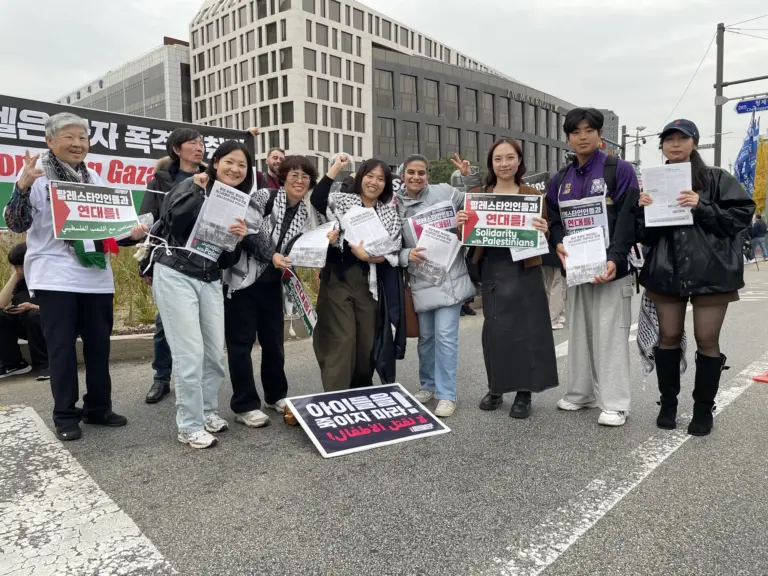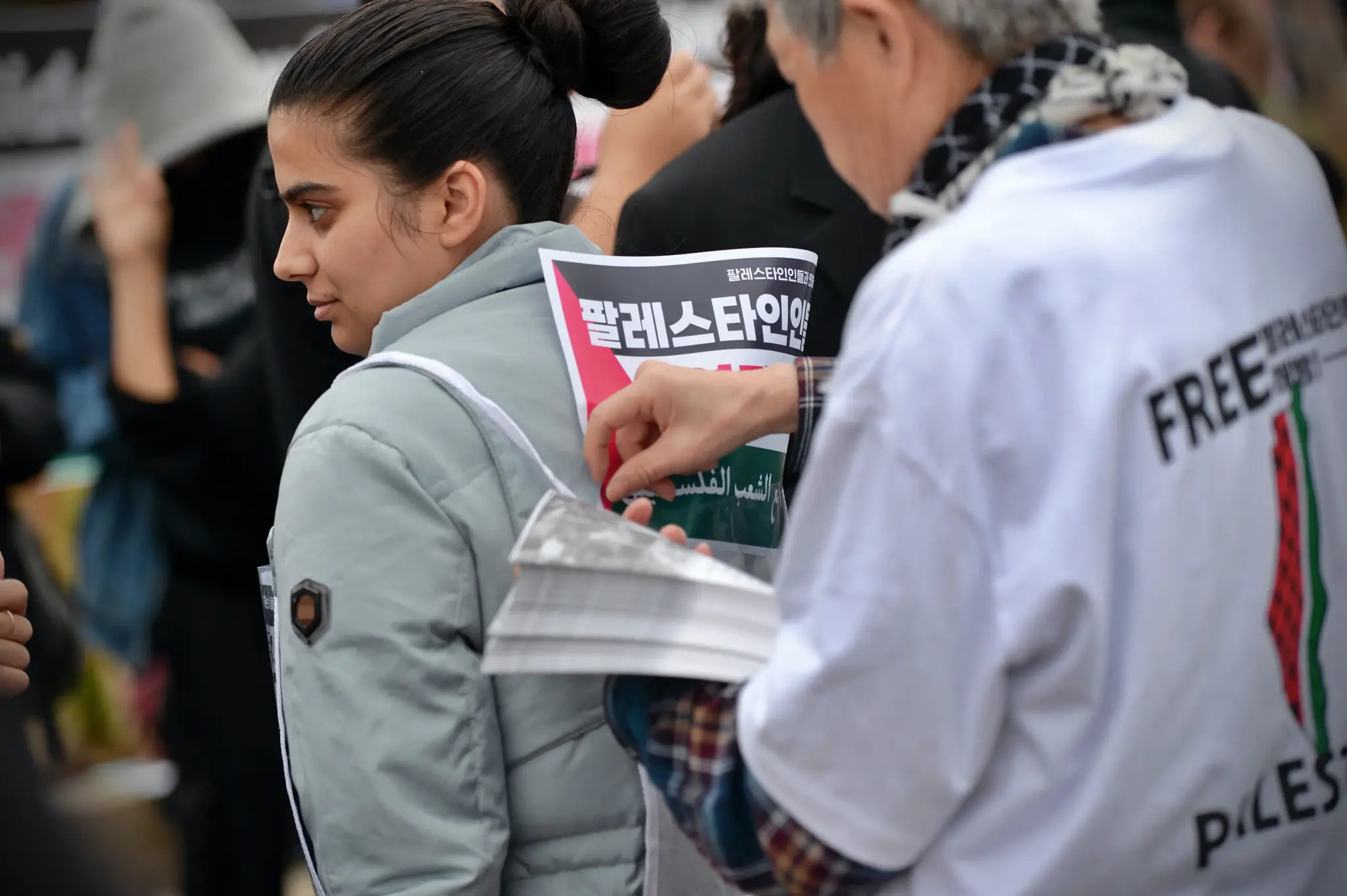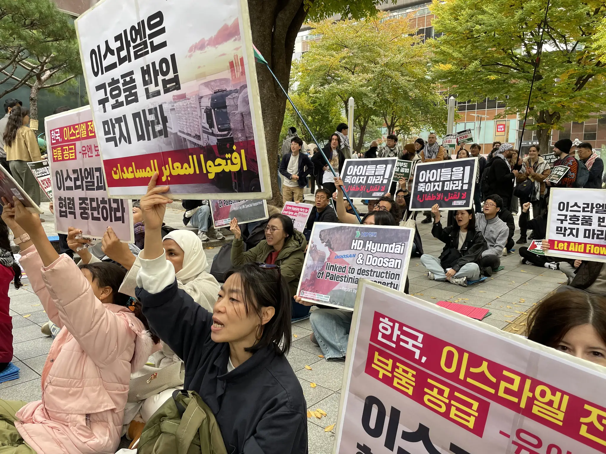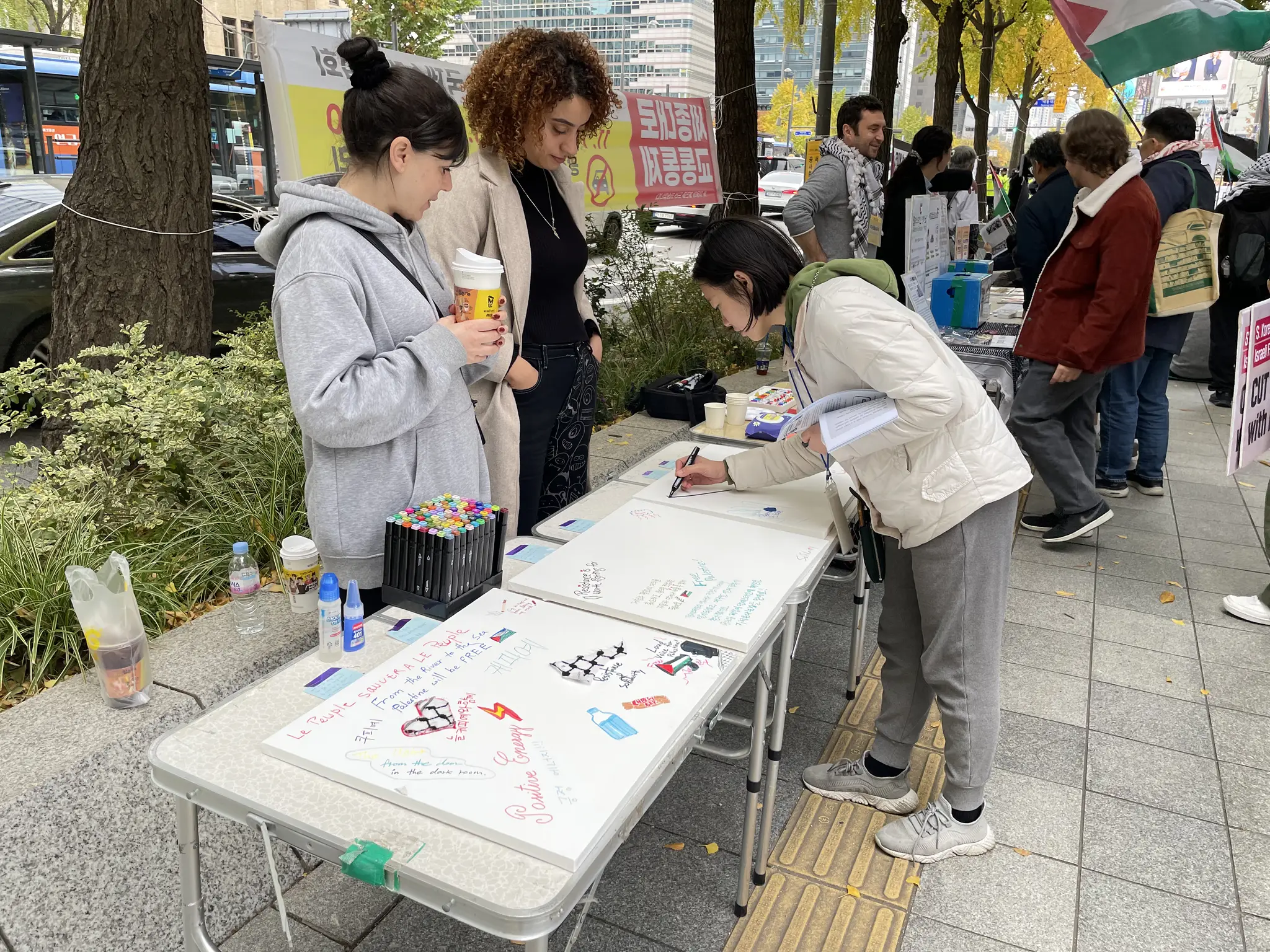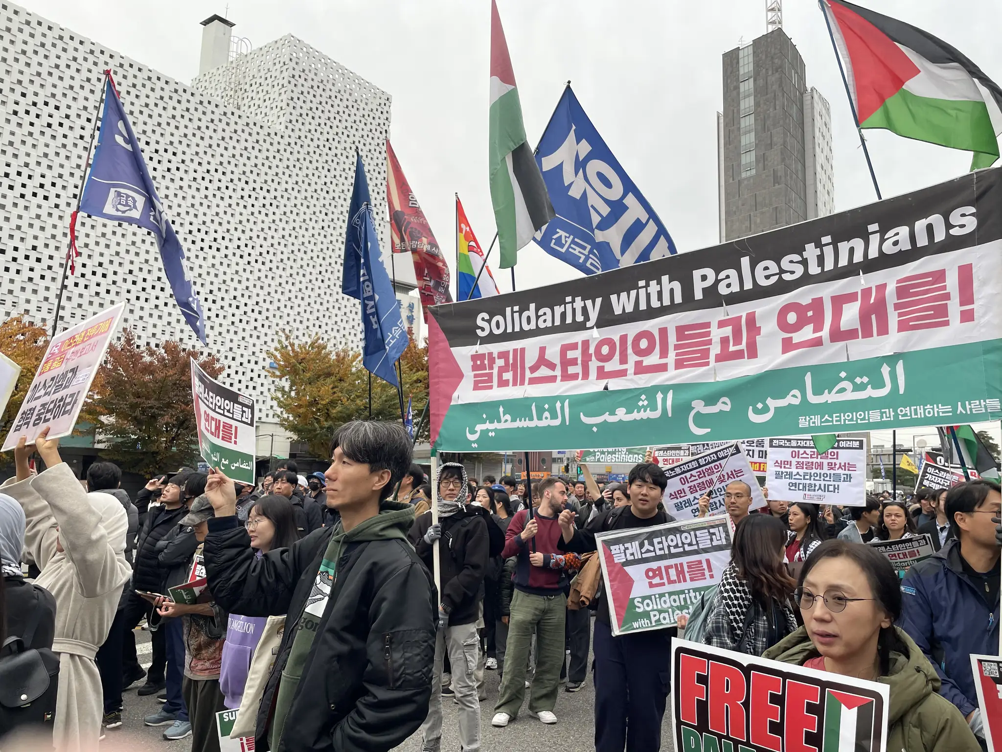 🚨 PSP also distributed leaflets exposing the ongoing cooperation between Israel and the South Korean government and corporations — demanding a complete end to all ties with Israel.
