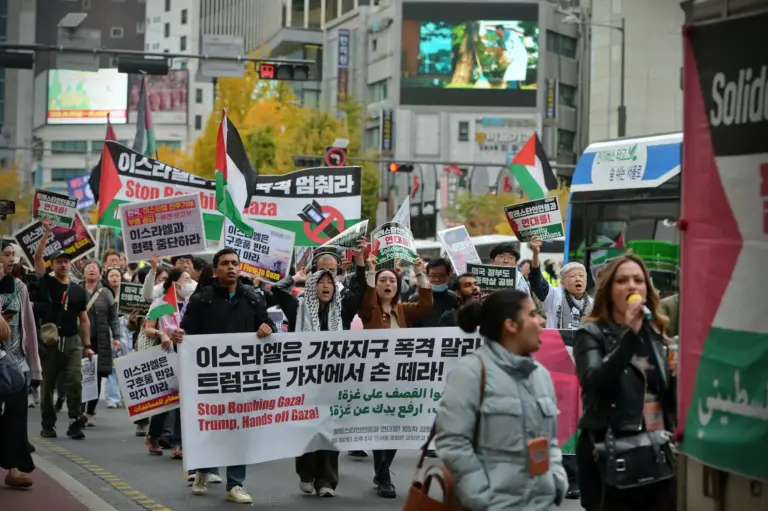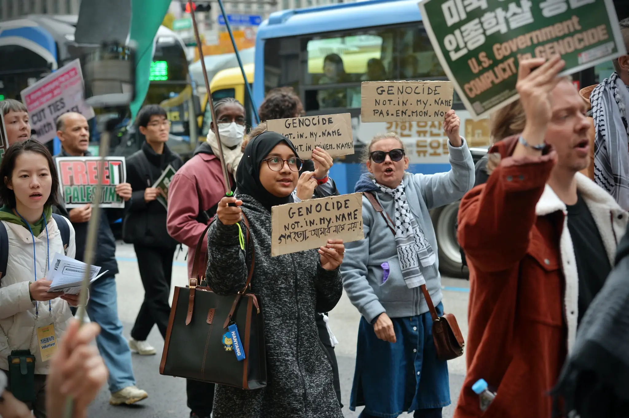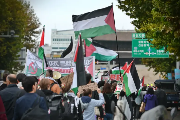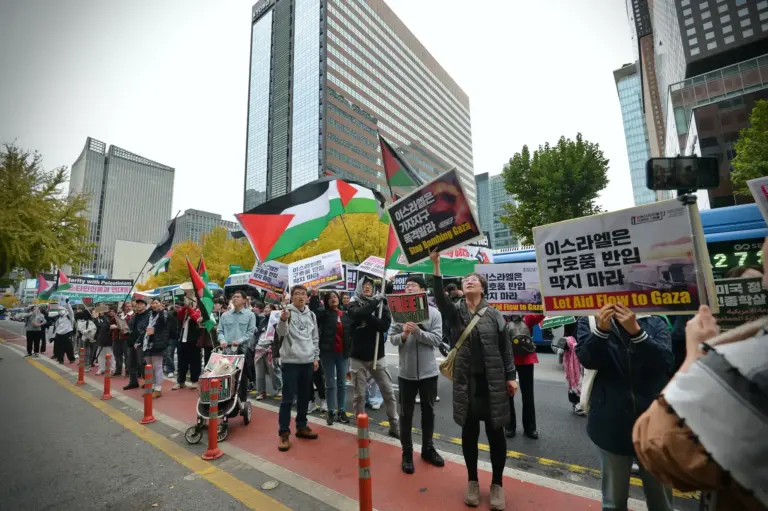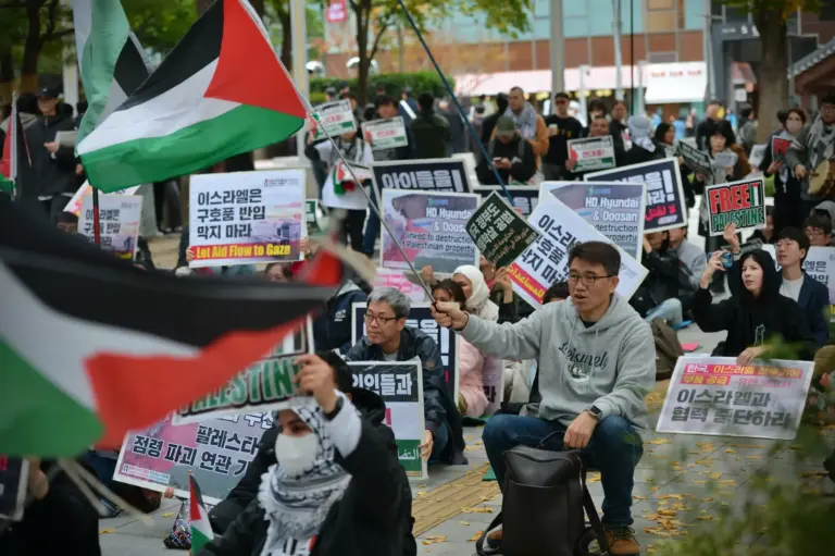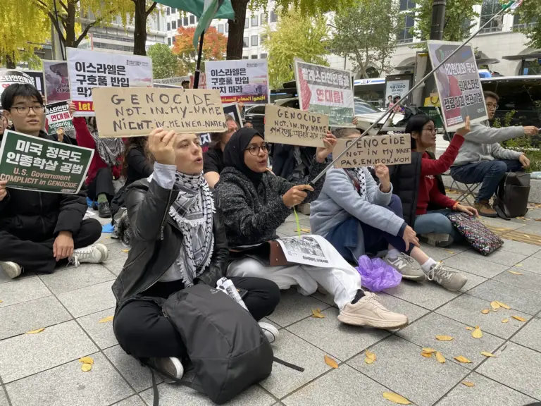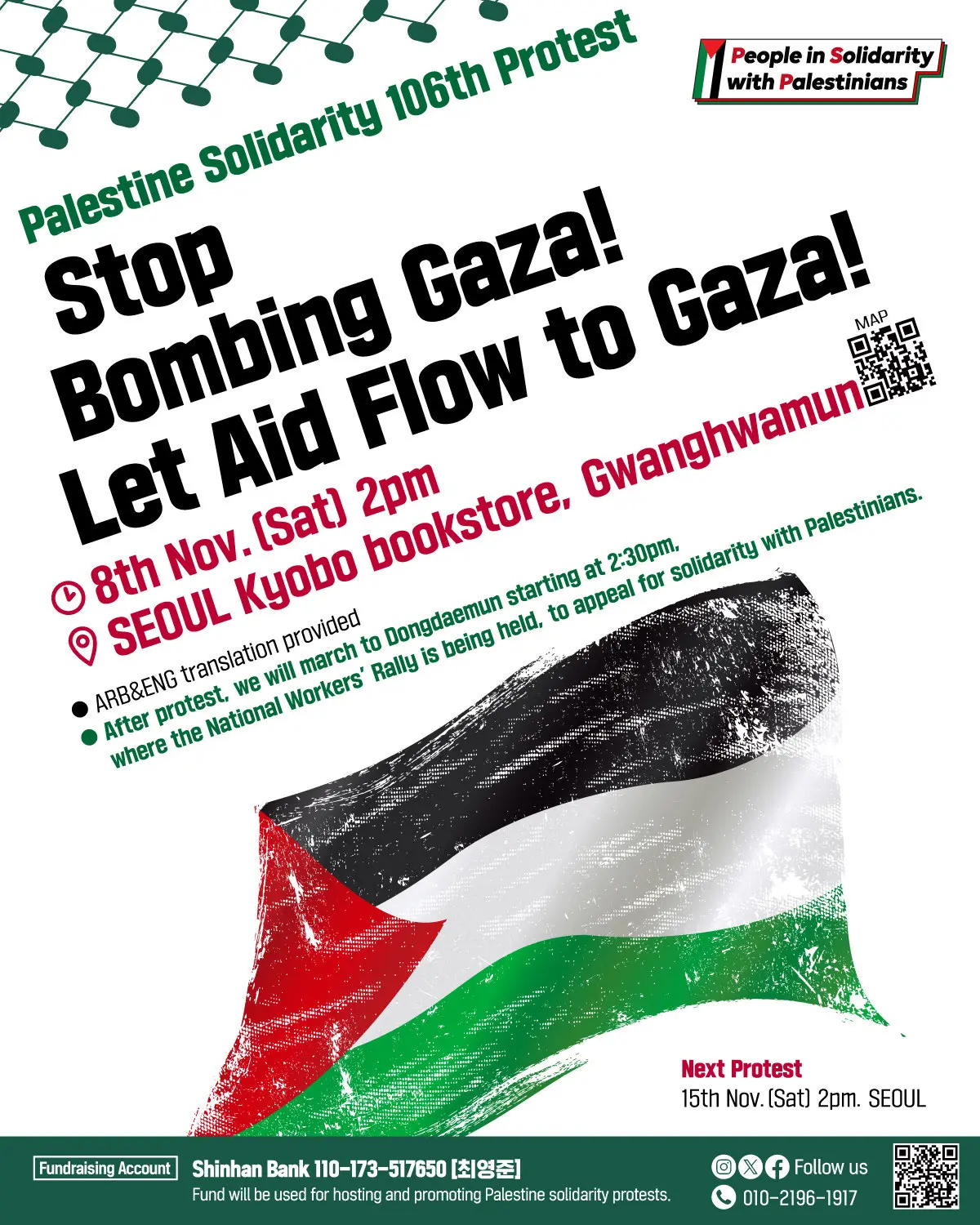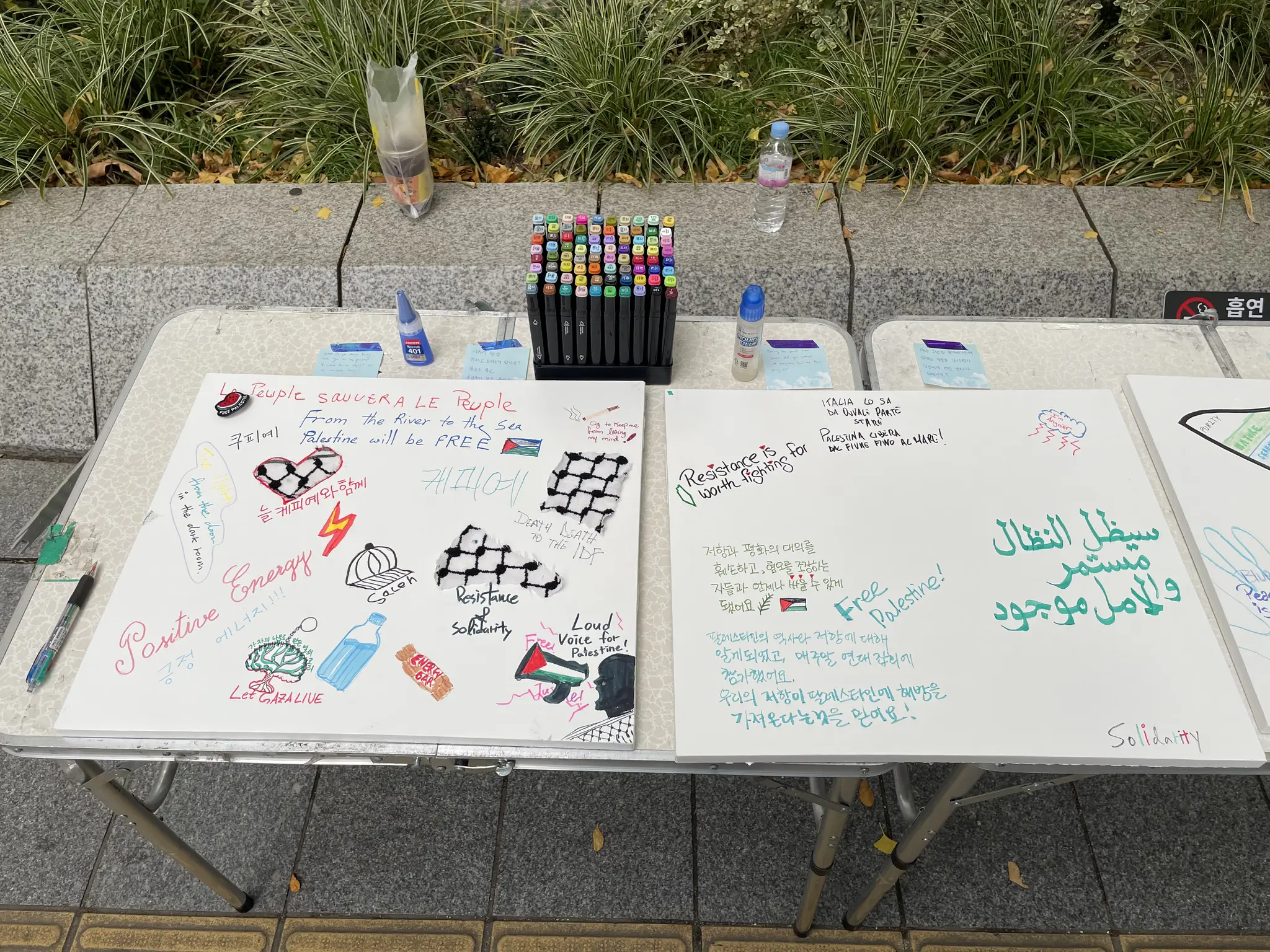 🚨 PSP also distributed leaflets exposing the ongoing cooperation between Israel and the South Korean government and corporations — demanding a complete end to all ties with Israel.