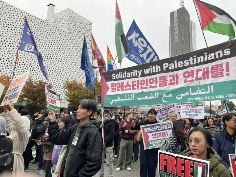 👊 ‘People in Solidarity with Palestinians’ (PSP) joined the National Workers’ Rally, the largest workers’ demonstration in South Korea, to call for solidarity with Palestinians.
