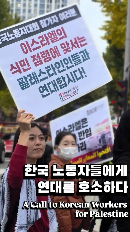 🎬 Check out the solidarity campaign of “People in Solidarity with Palestinians” (PSP) at the National Workers’ Rally — the largest workers’ demonstration in Korea!