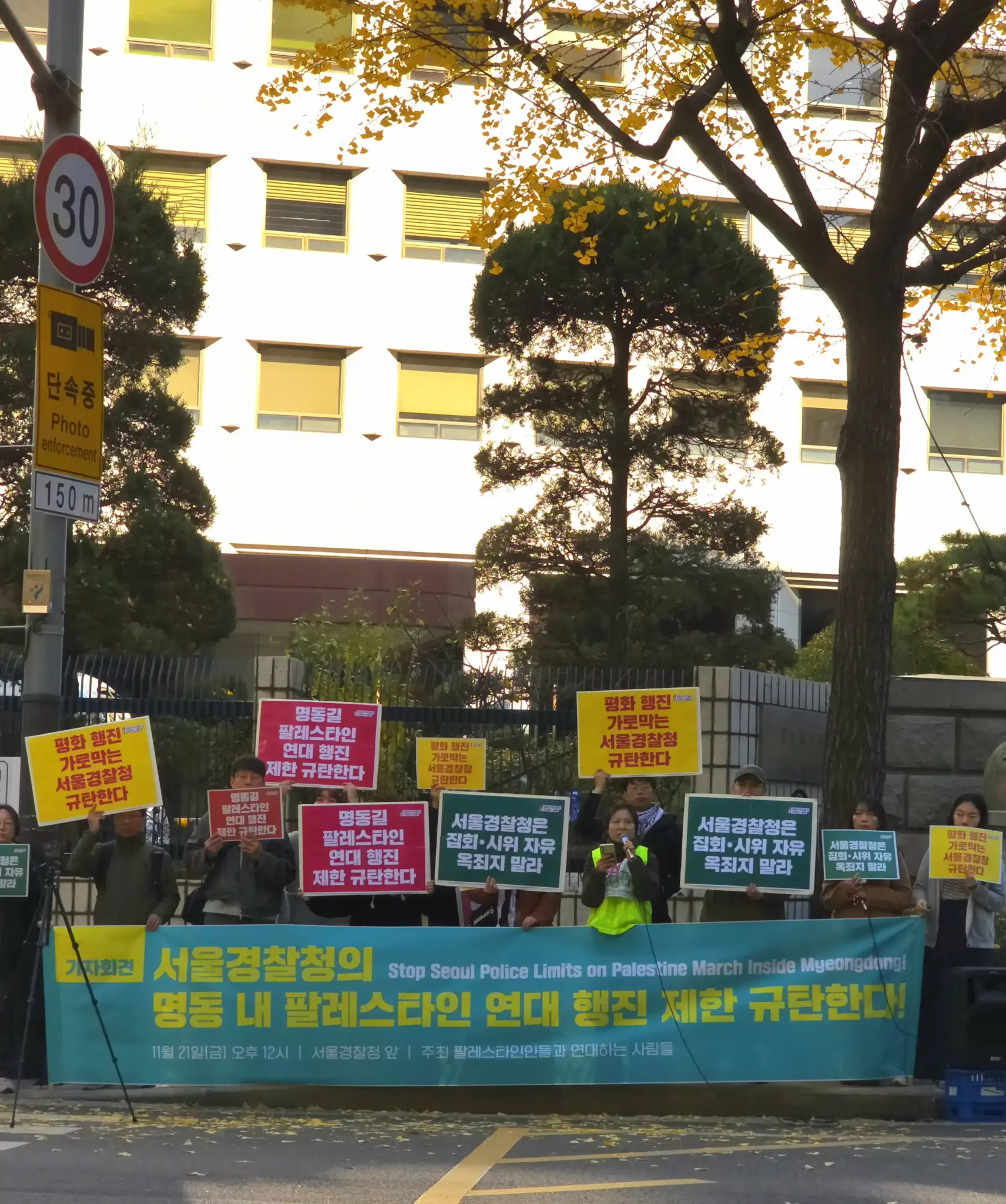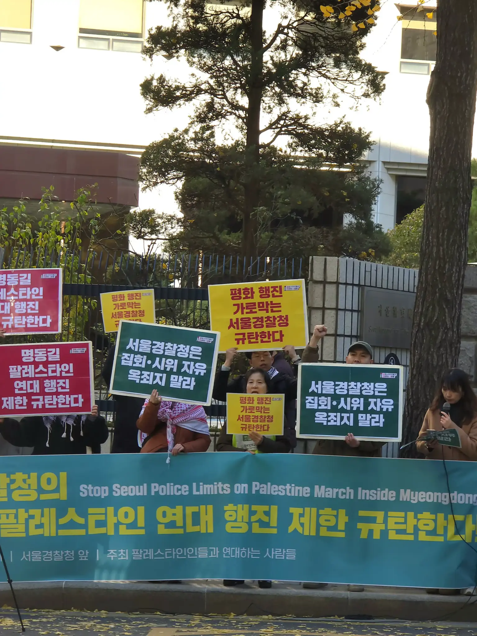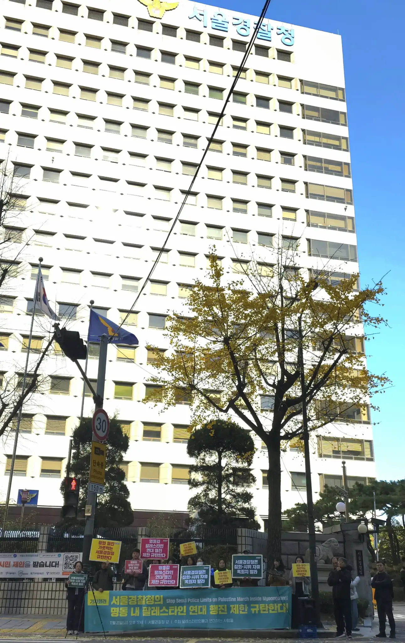 💥 A press conference “We Condemn the Seoul Metropolitan Police’s Restrictions on the Palestinian Solidarity March in Myeong-dong!” was held this afternoon in front of the Seoul Metropolitan Police Agency.