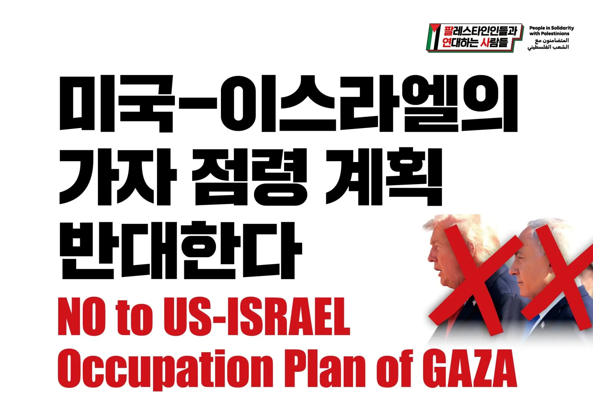 [대형팻말] 미국-이스라엘의 가자 점령 계획 반대한다