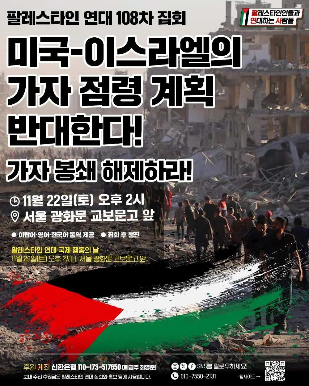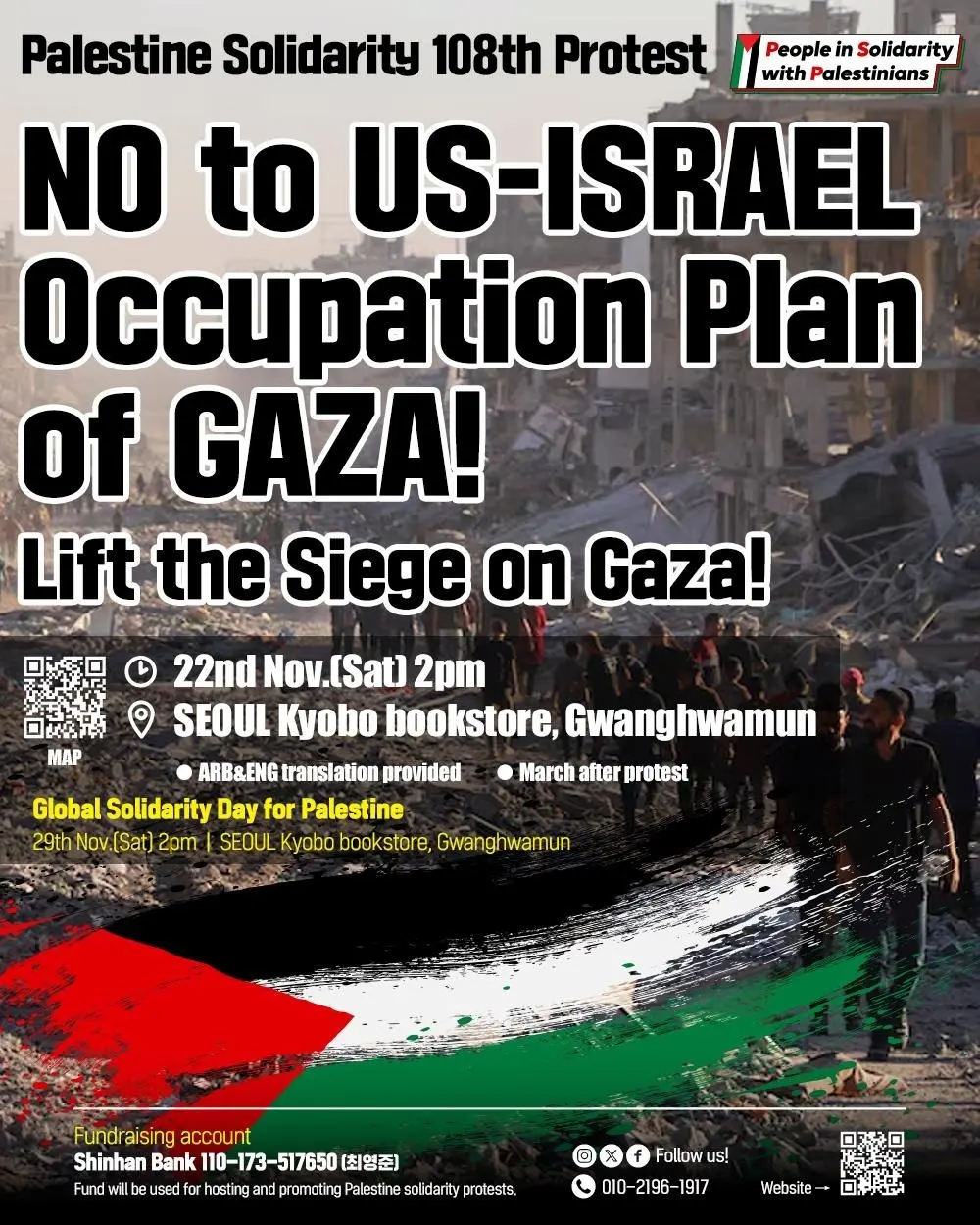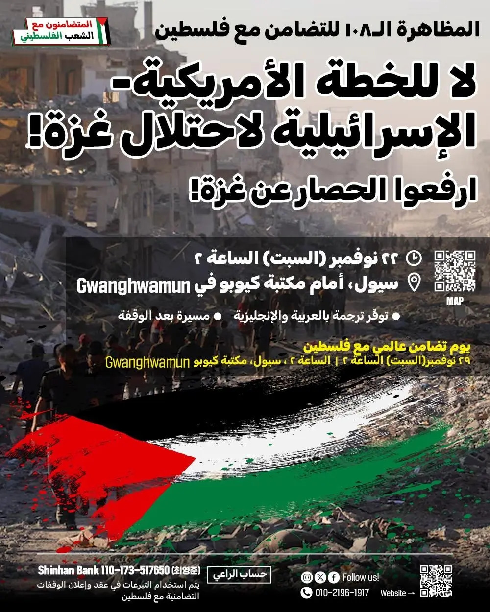 💥 미국과 이스라엘의 가자 점령 계획 반대한다!