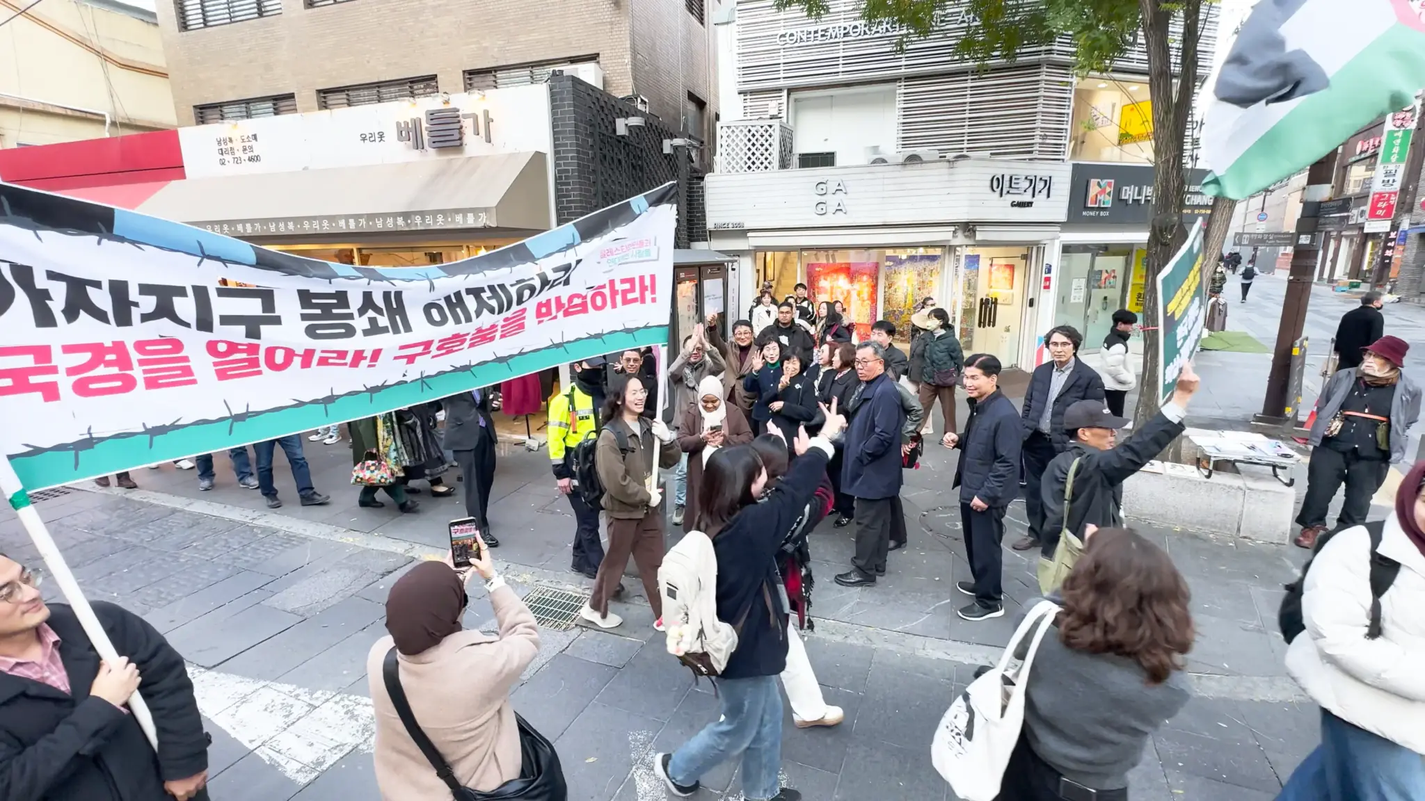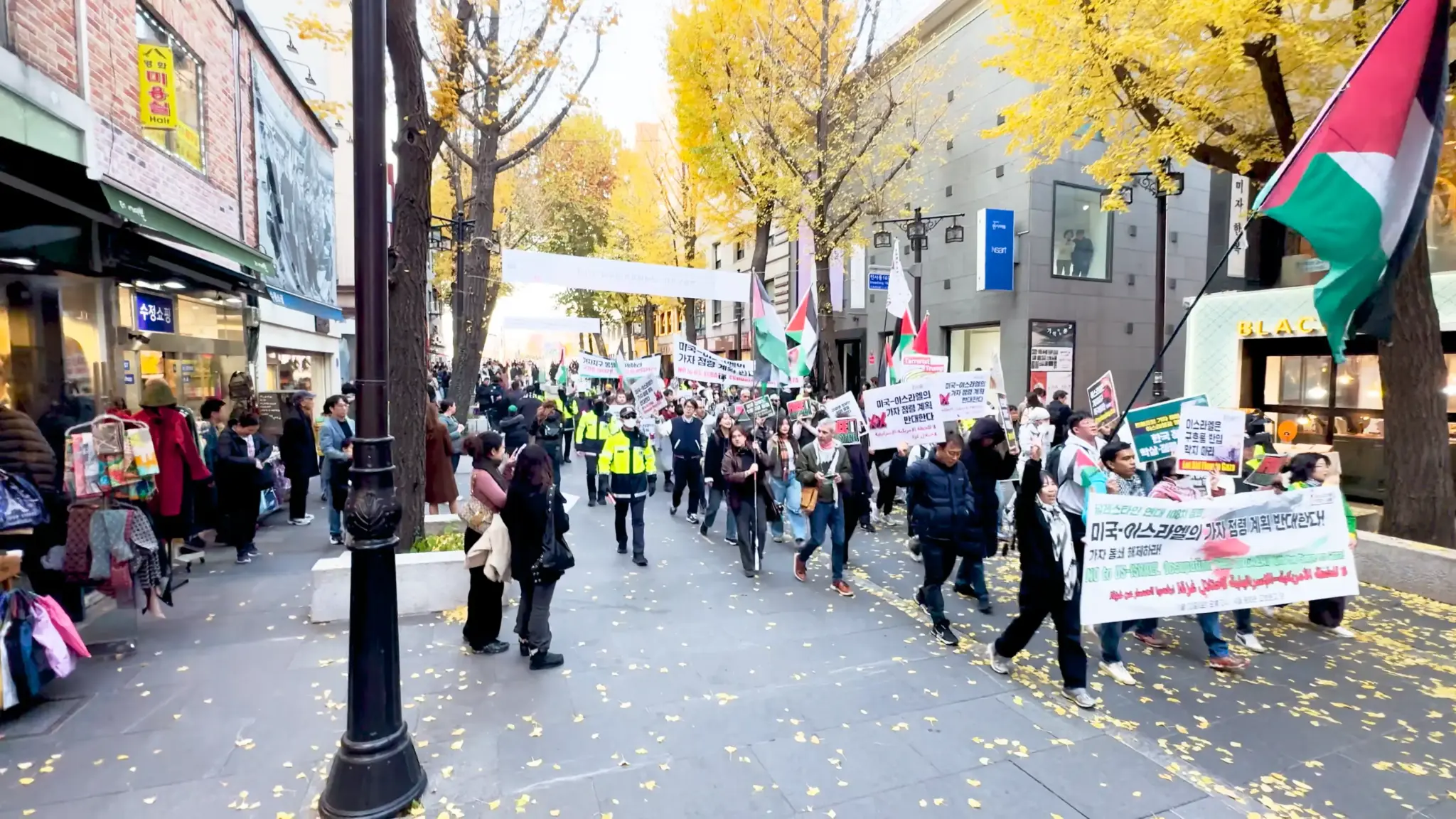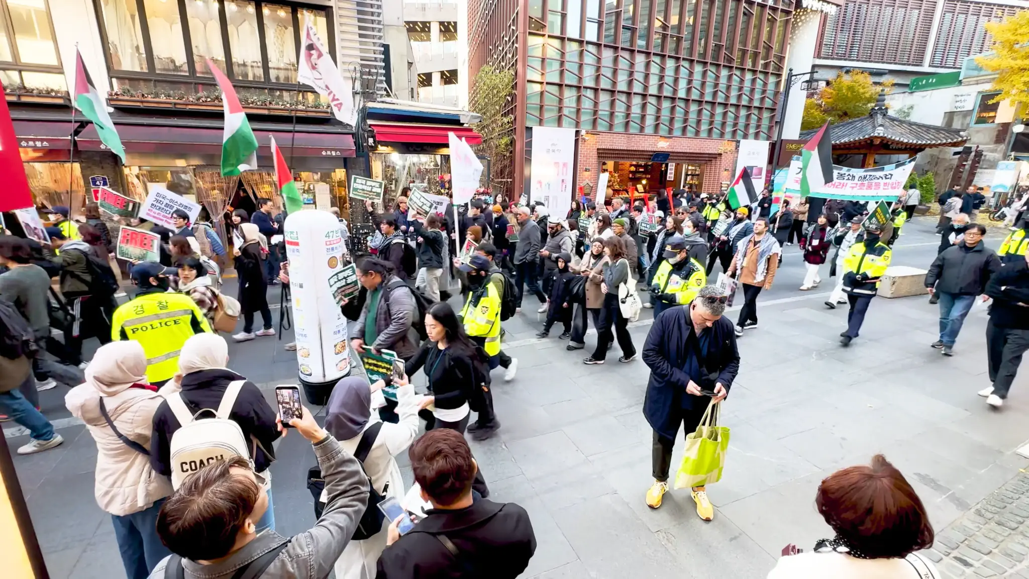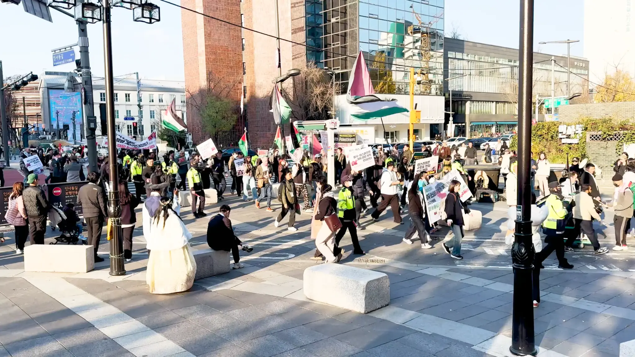 👣 The police initially banned the march by ‘People in Solidarity with Palestinians’ (PSP) on Insadong street. However, thanks to the support of MINBYUN–Lawyers for a Democratic Society, our injunction was upheld, allowing us to march through Insadong street without legal restrictions.