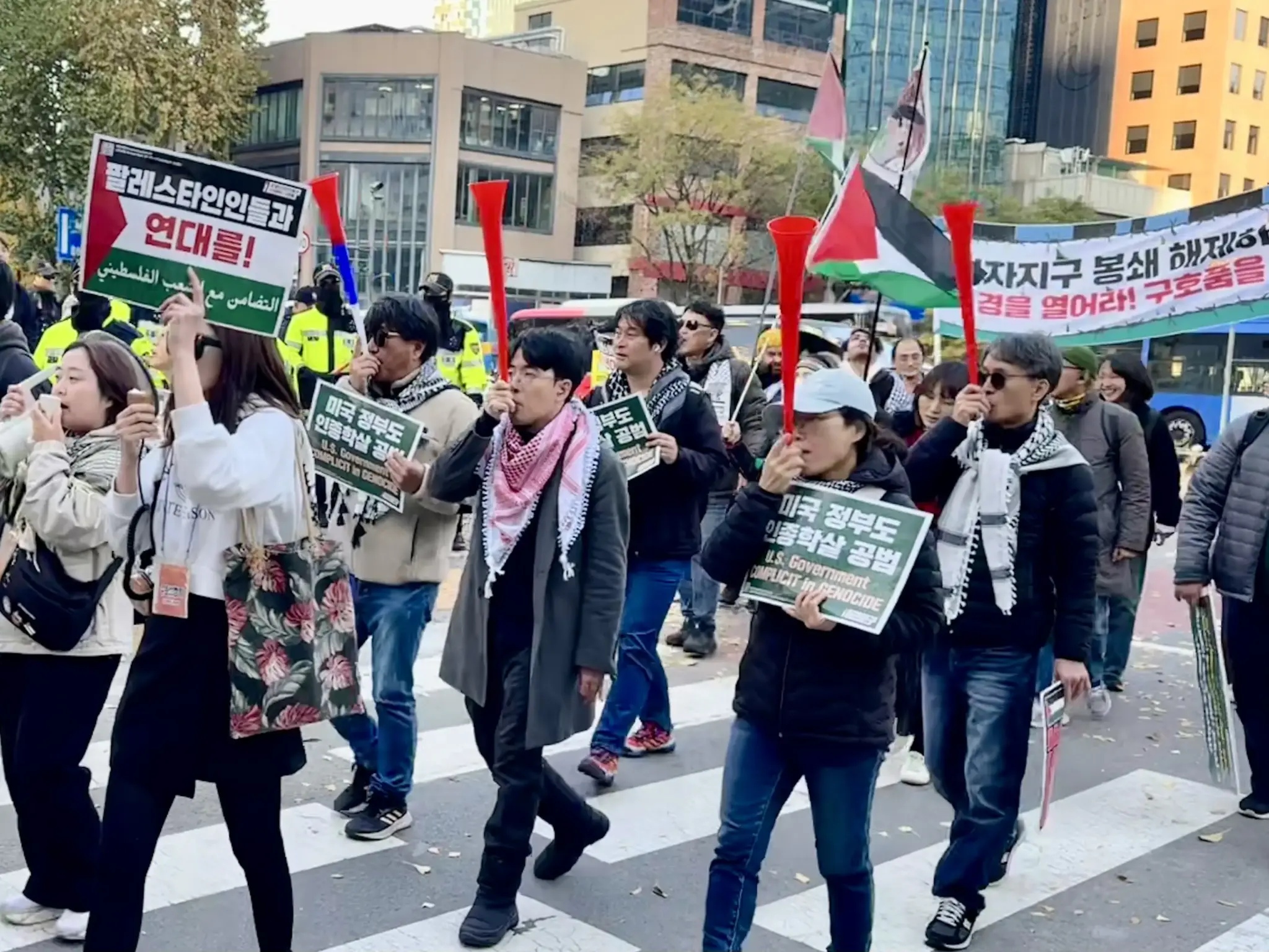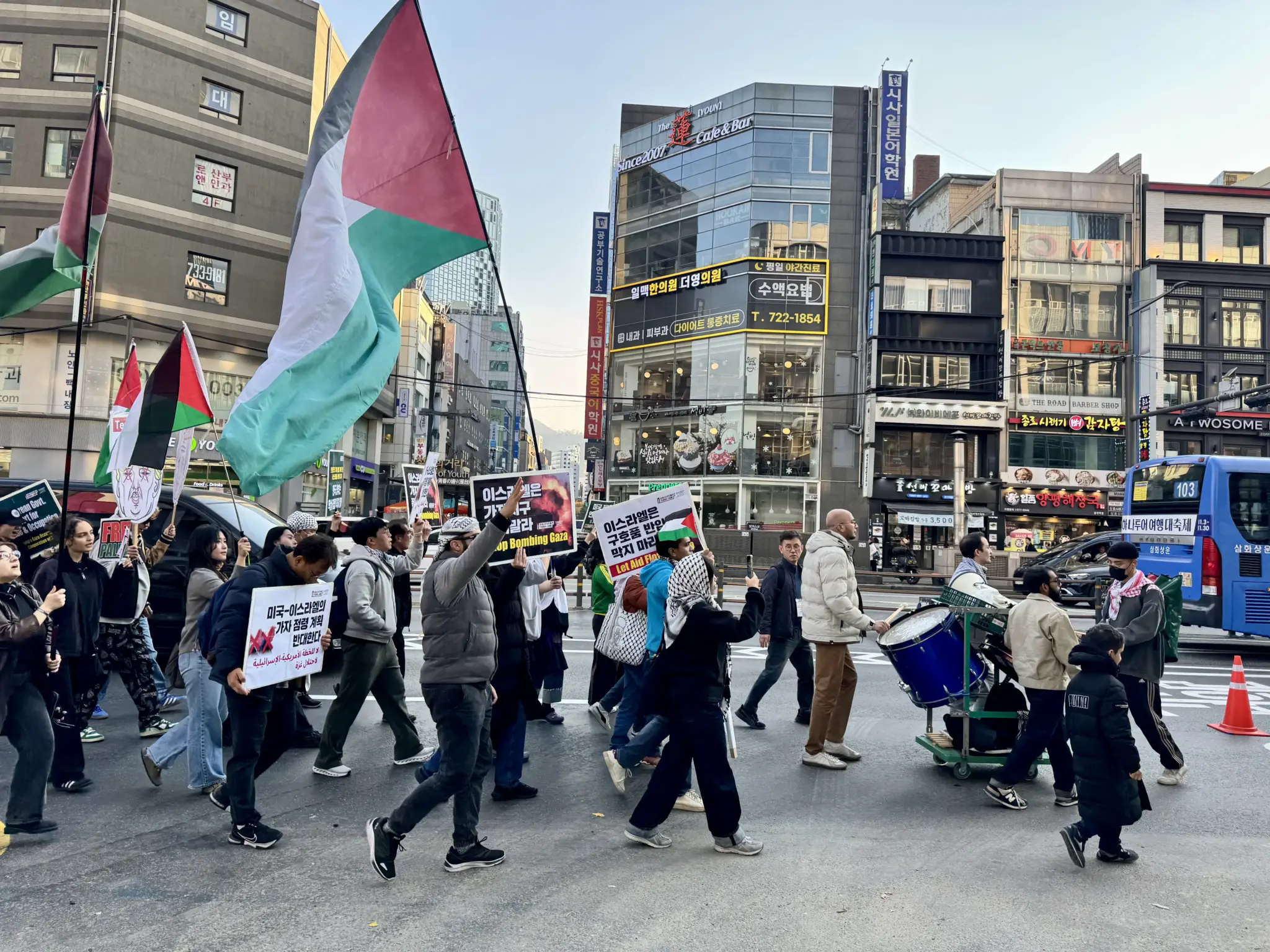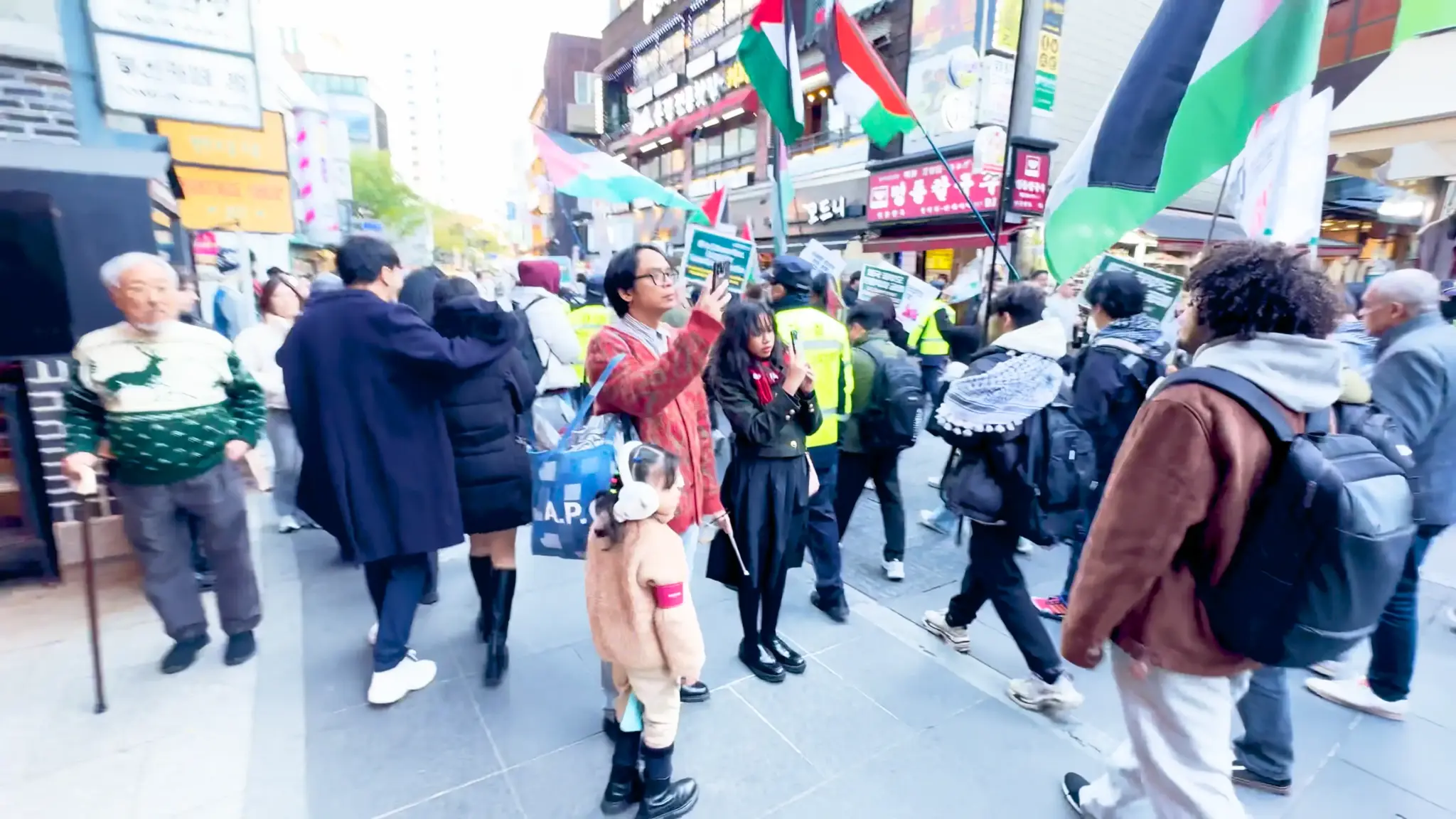 👣 The police initially banned the march by ‘People in Solidarity with Palestinians’ (PSP) on Insadong street. However, thanks to the support of MINBYUN–Lawyers for a Democratic Society, our injunction was upheld, allowing us to march through Insadong street without legal restrictions.