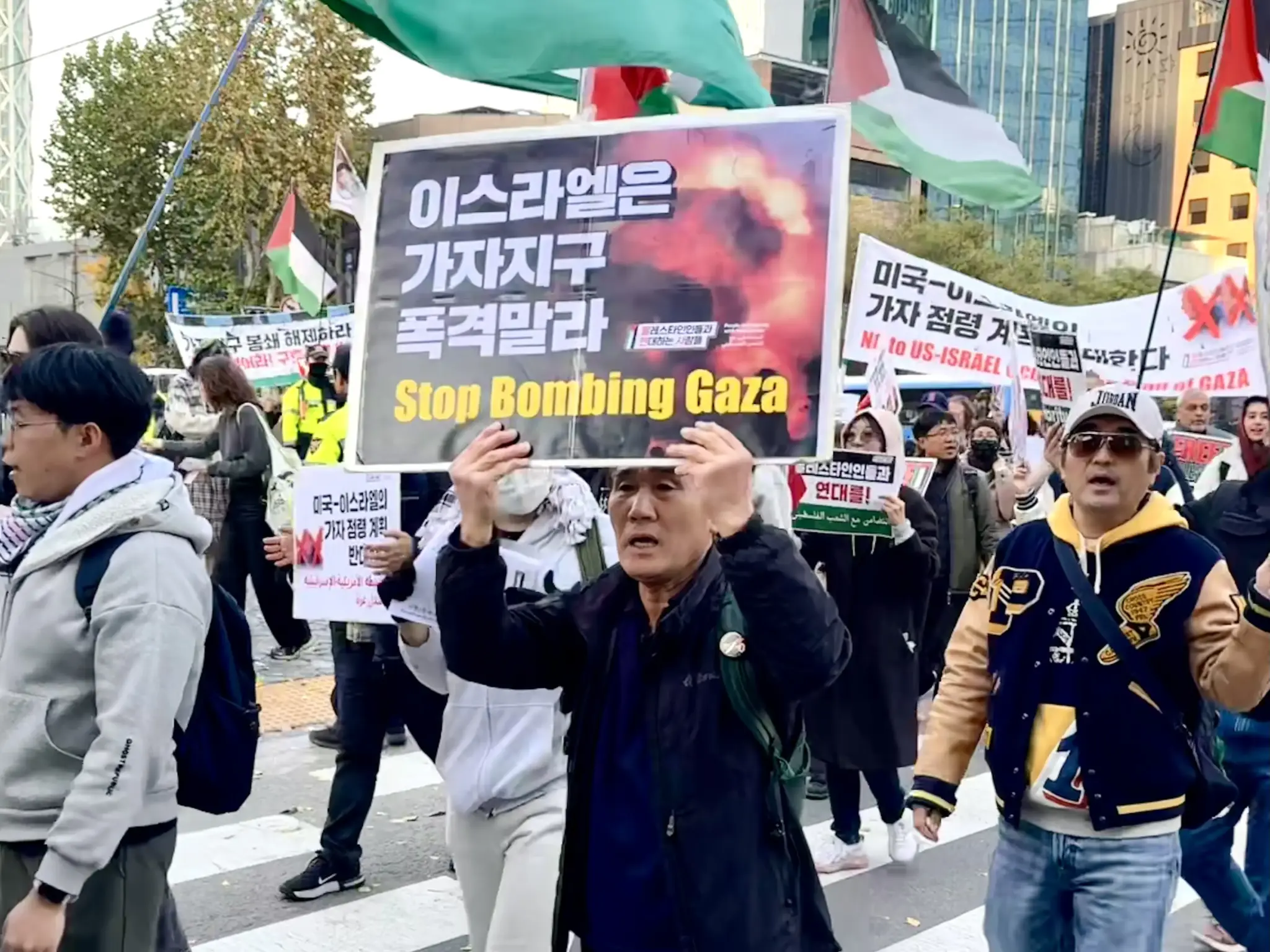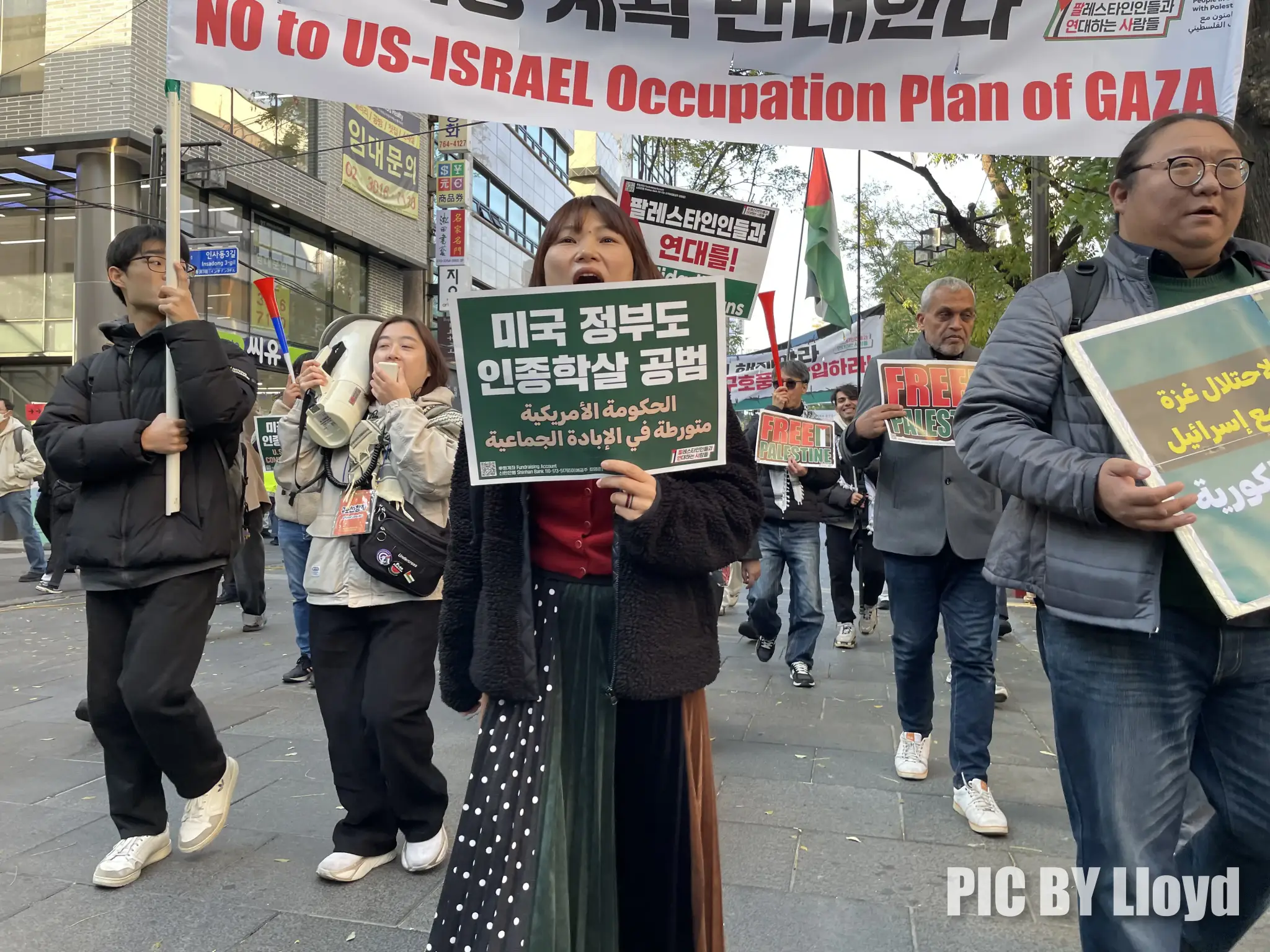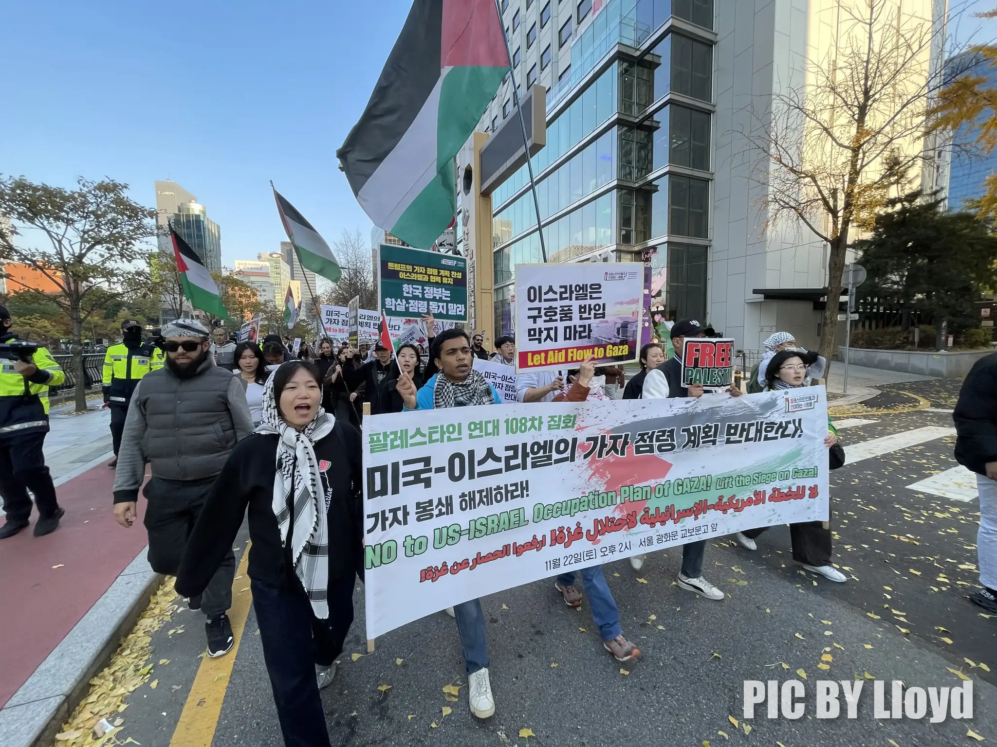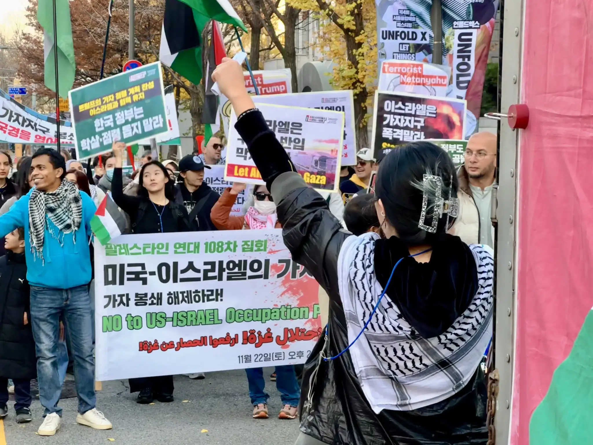 👣 The police initially banned the march by ‘People in Solidarity with Palestinians’ (PSP) on Insadong street. However, thanks to the support of MINBYUN–Lawyers for a Democratic Society, our injunction was upheld, allowing us to march through Insadong street without legal restrictions.