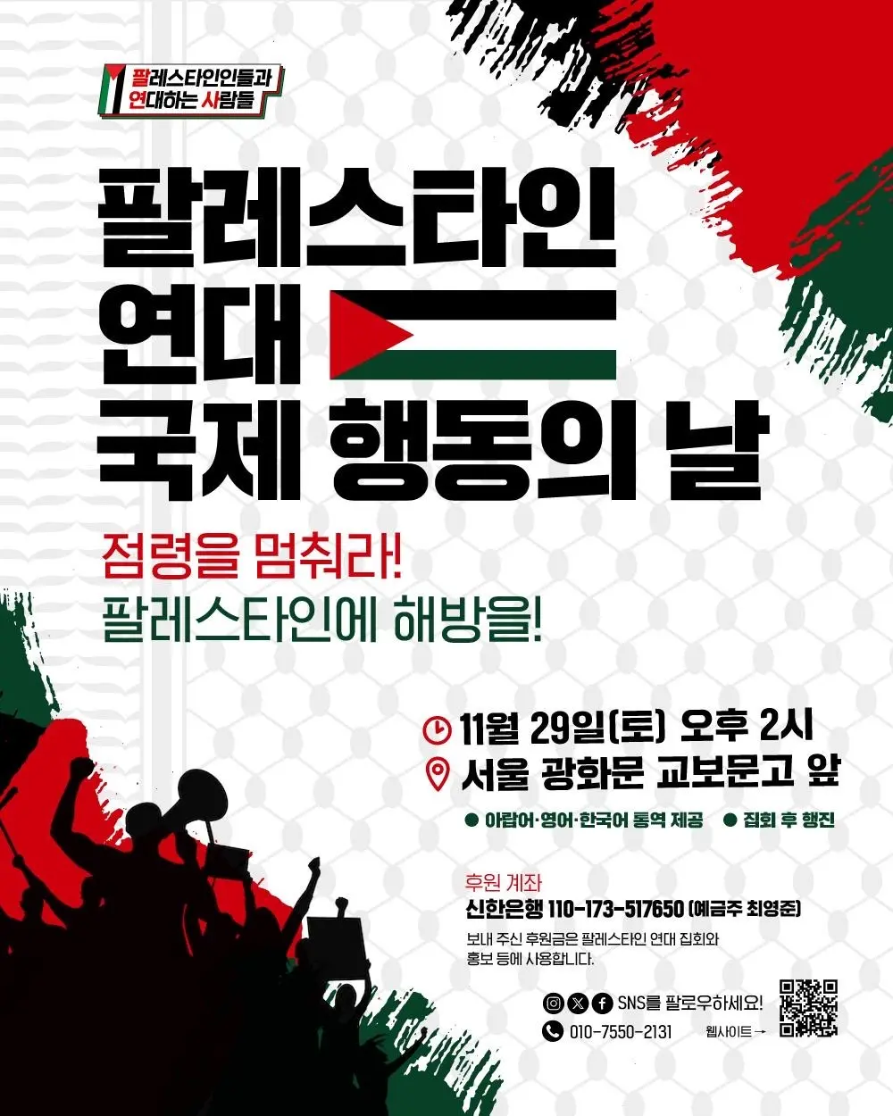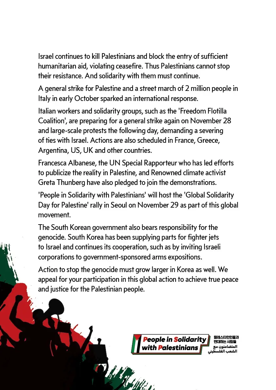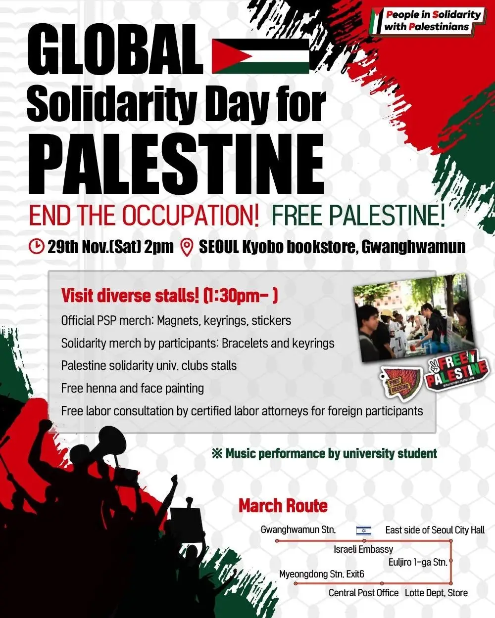 🇵🇸 On November 29, many people gathered in Korea for the ‘Global Solidarity Day for Palestine,’ demonstrating the power of collective solidarity.