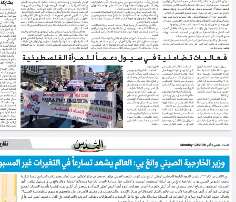 📰 Palestine’s leading newspaper Al-Quds reports: “Solidarity protest in support of Palestinian women held in Seoul”