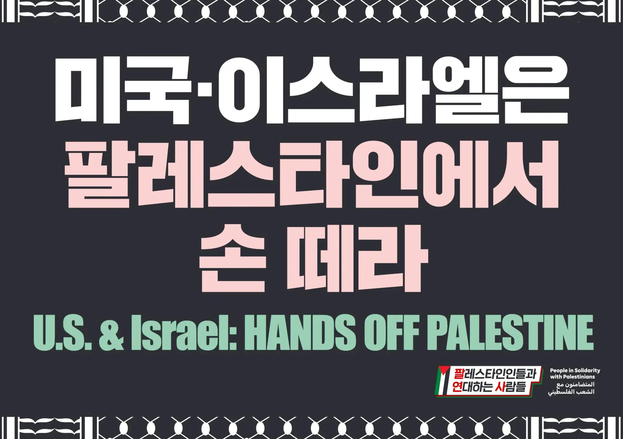 [대형 팻말] 미국·이스라엘은 팔레스타인에서 손 떼라