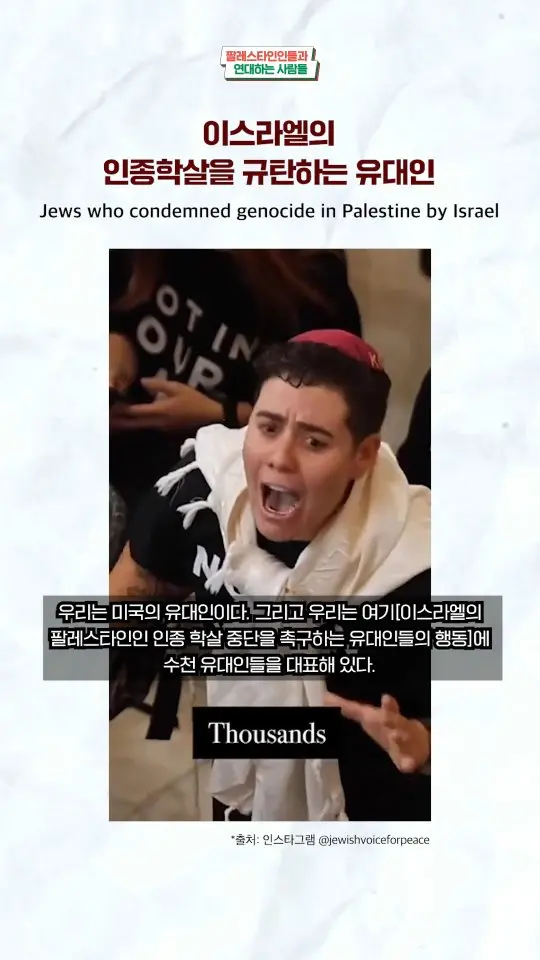 🙅🏻♀️ 그런데, 지금 팔레스타인에서 벌어지는 일은 제2의 홀로코스트와 다를 바 없습니다. 이스라엘은 팔레스타인인들의 땅과 삶을 빼앗으며 점령했고, 엄청난 인종 학살이 벌어지고 있습니다.