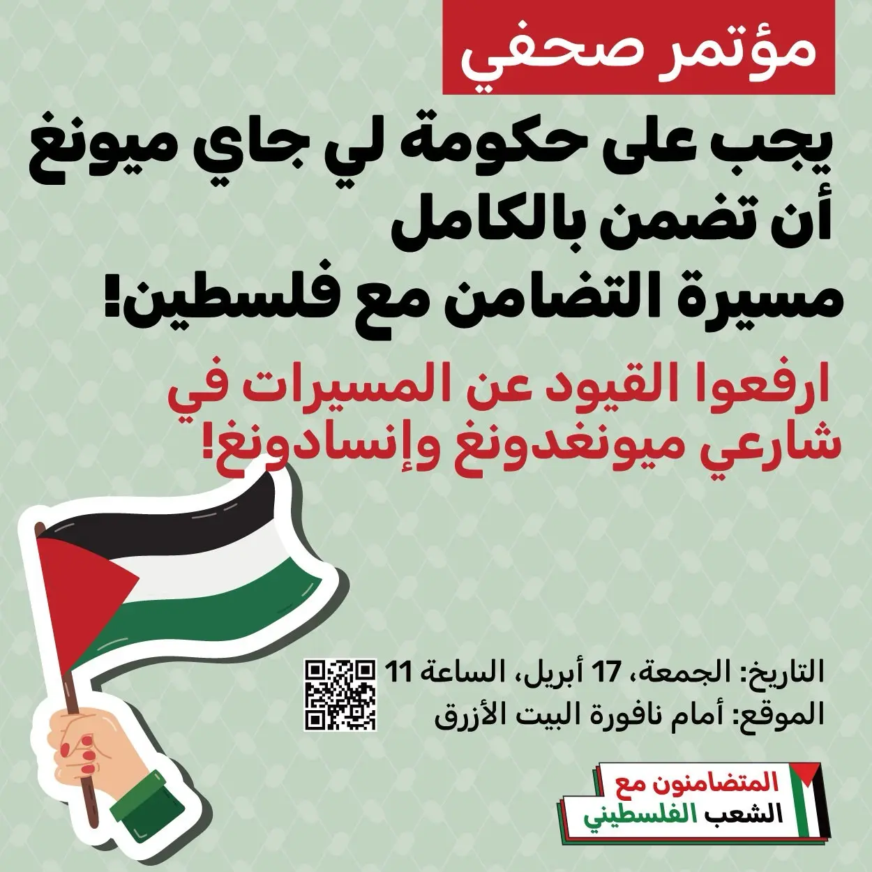 يجب على حكومة لي جاي ميونغ أن تضمن بالكامل مسيرة التضامن مع فلسطين!