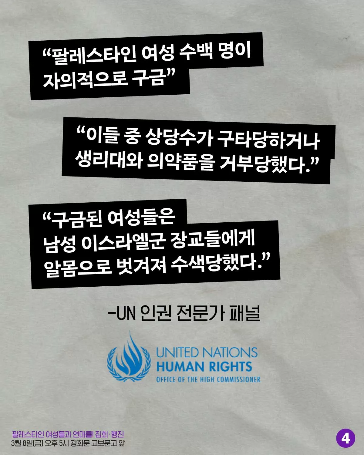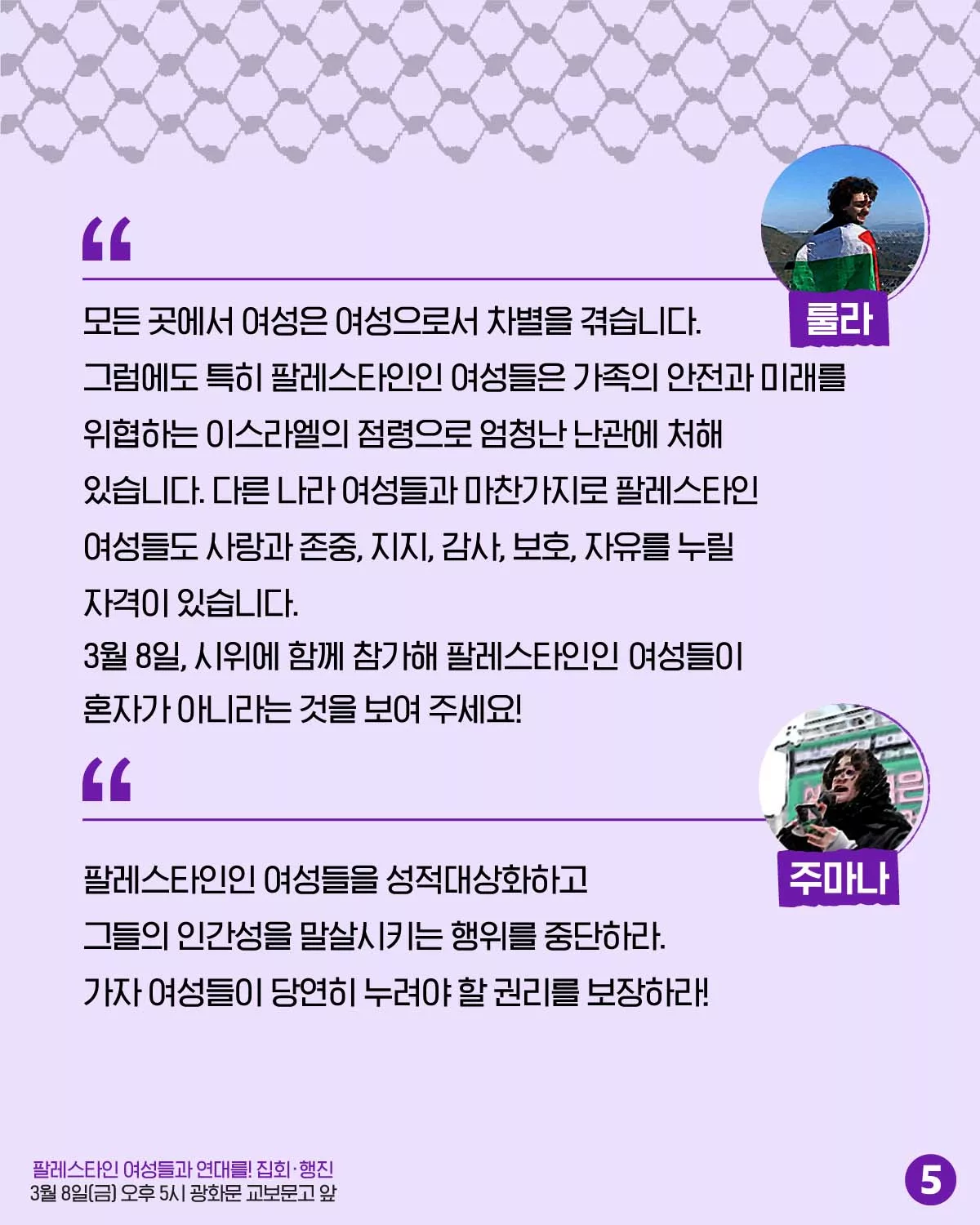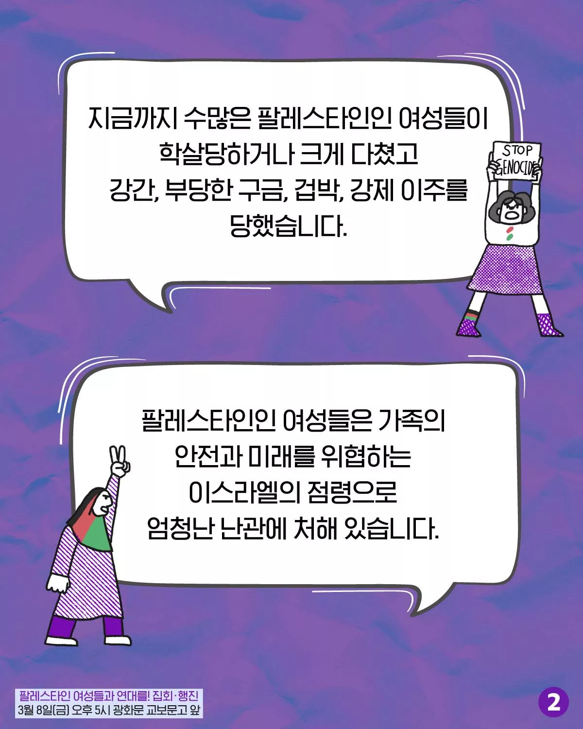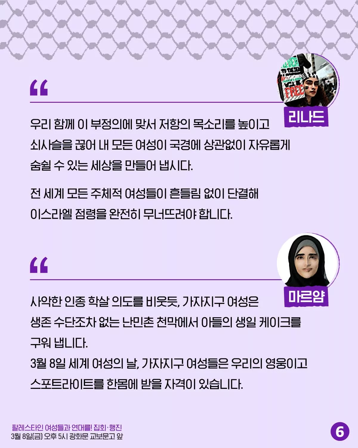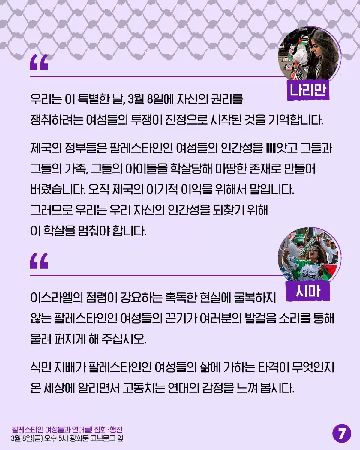 [카드뉴스] 3.8 세계 여성의 날을 앞두고 재한 팔레스타인인 여성들의 호소