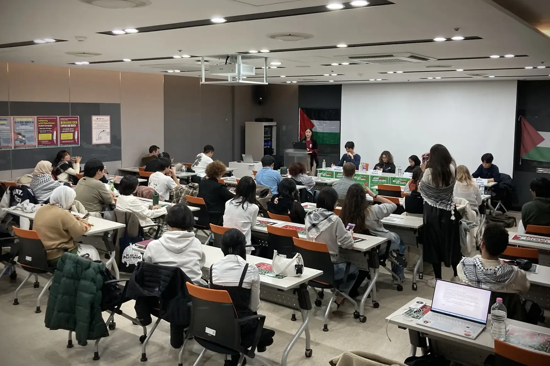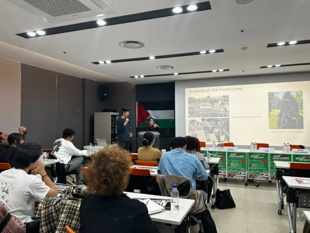 On November 23rd, the ‘Students in Korea Speak Out: Building Palestine Solidarity on Campus’ forum was successfully held!🇵🇸✊ The forum, which was co-hosted by student groups such as SNU Soobak, KUfiya, Hanyang University Zaytuna, Yallah Yonsei, and Workers’ Solidarity Student Group, was joined by many students from various backgrounds.