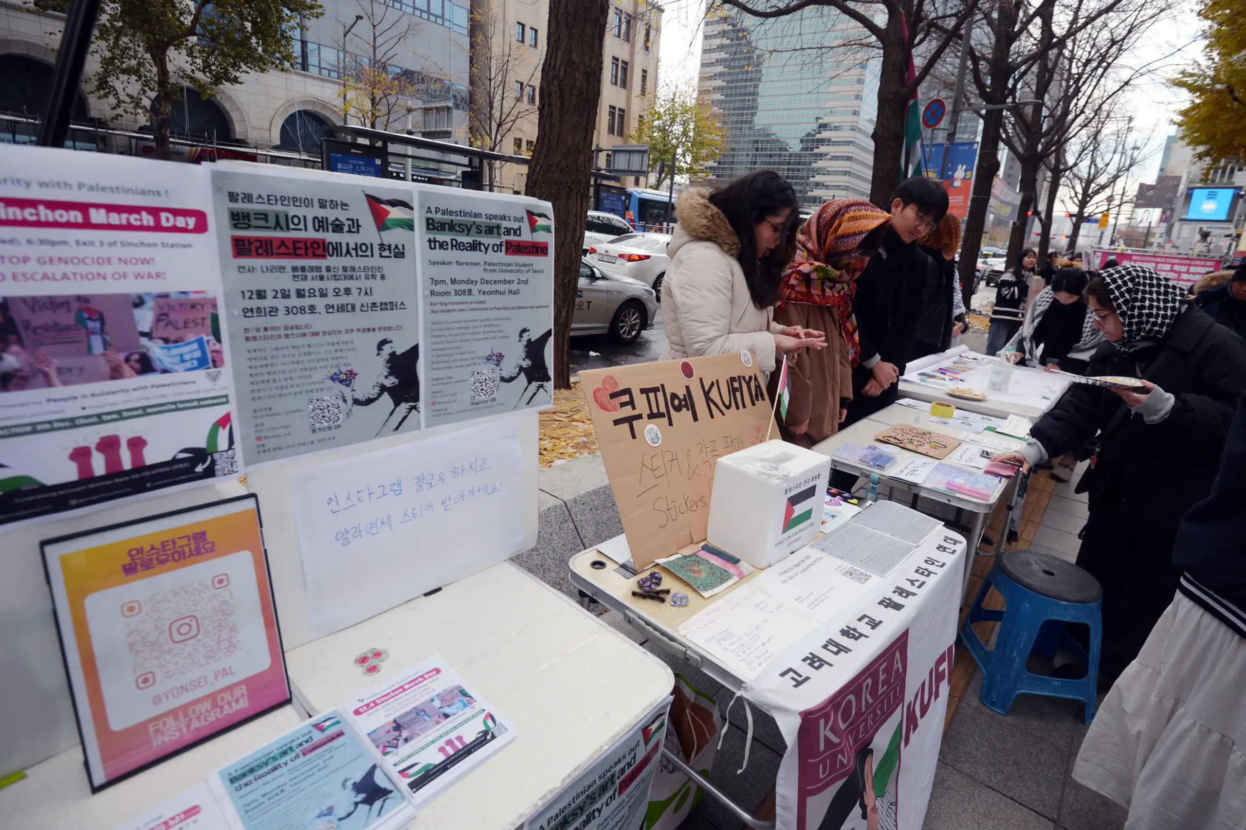 - 팔레스타인인 대학생이 사회를 보고, 팔레스타인 연대 대학생 모임들이 다양한 연대 부스를 운영합니다.
