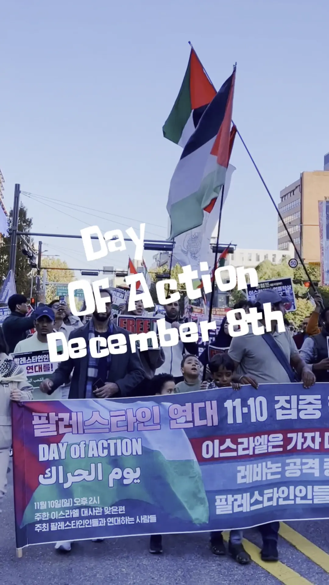 그리고 팔레스타인은 전 세계 인류애의 상징이 됐습니다. 인티파다 정신을 지지•연대하며 12월 8일 일요일 서울에서 집중 행동의 날‘이 열립니다. 함께 합시다!