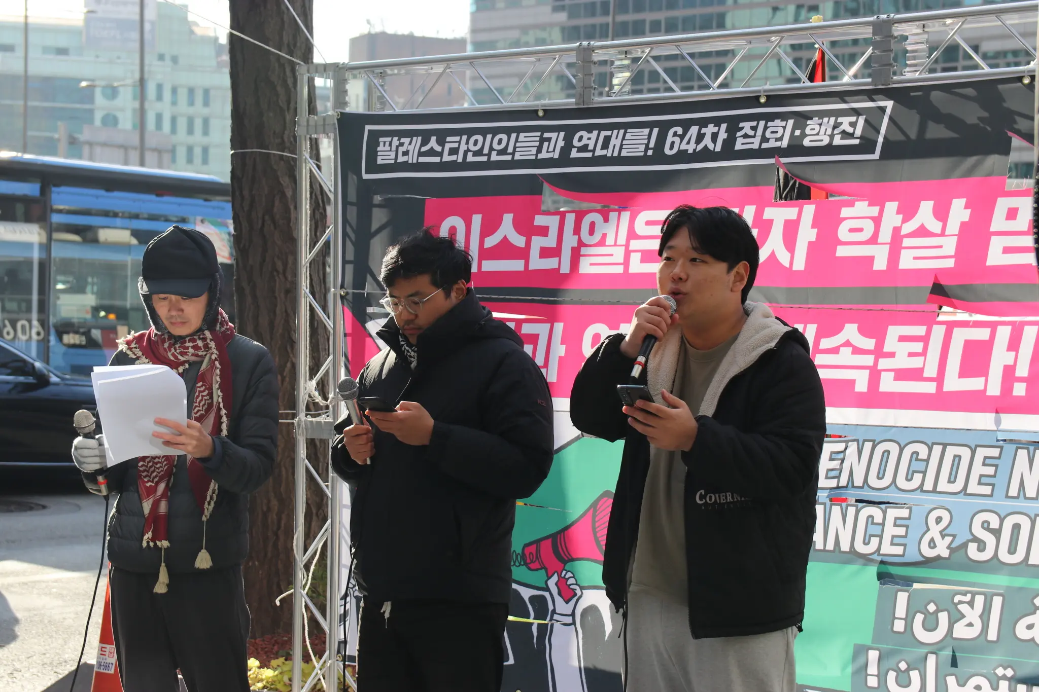 ※ 당분간 토요일마다 윤석열 퇴진 집회가 열리는 관계로 ‘팔레스타인인들과 연대를!’ 집회는 일요일 오후 2시에 열립니다. 집회 소식은 웹사이트에서 확인할 수 있습니다.