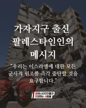 ![[영상] 2025 힌츠페터상 수상 가자 출신 기자 아슈라프 마샤라위의 메시지](https://palestine-solidarity.or.kr/wp-content/uploads/2025/11/2025-11-07-2025-힌츠페터상-수상-가자-출신-기자-아슈라프-마샤라위의-메시지-썸네일-300x169.webp)